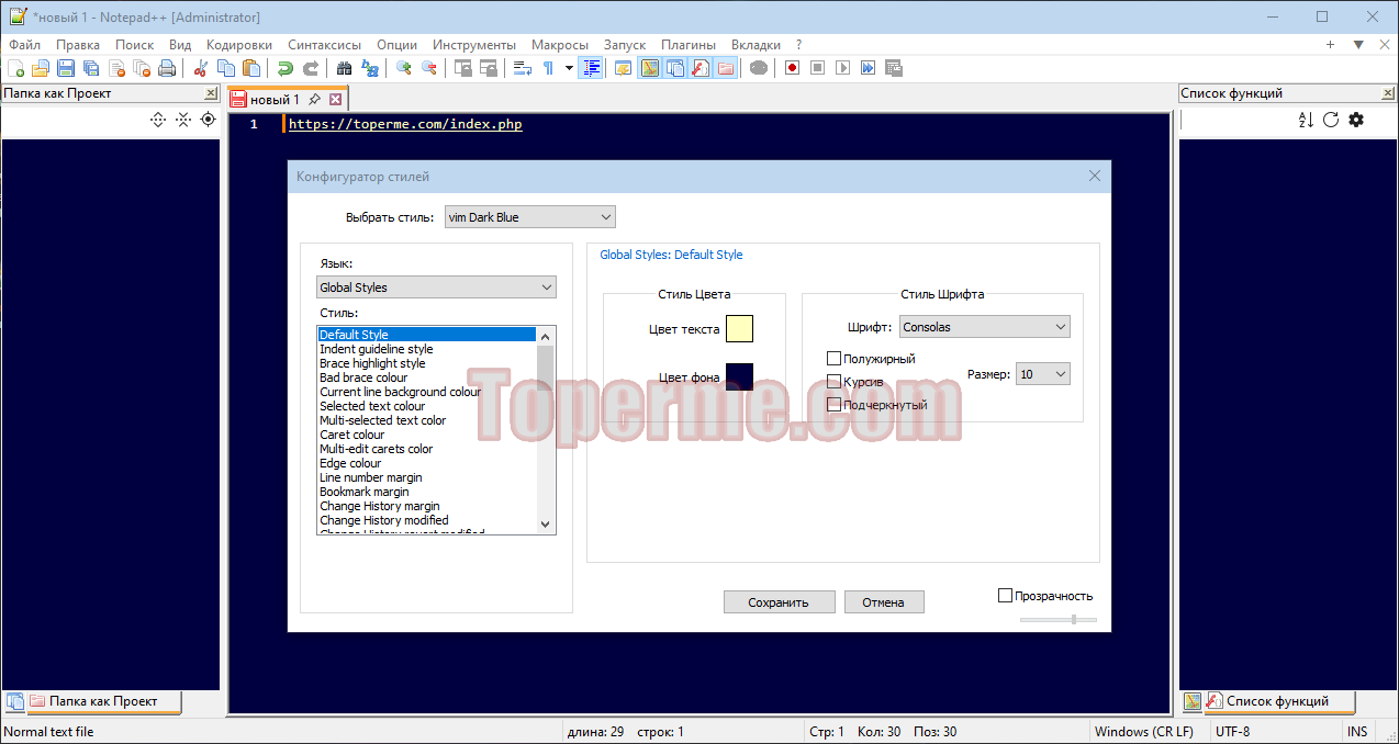 - Настраиваемый пользователем режим подсветки синтаксиса