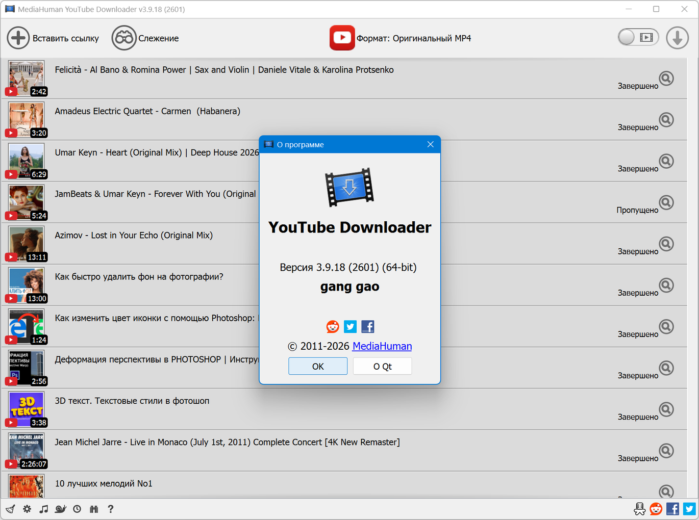 Версия программы: 3.9.18 (2601)