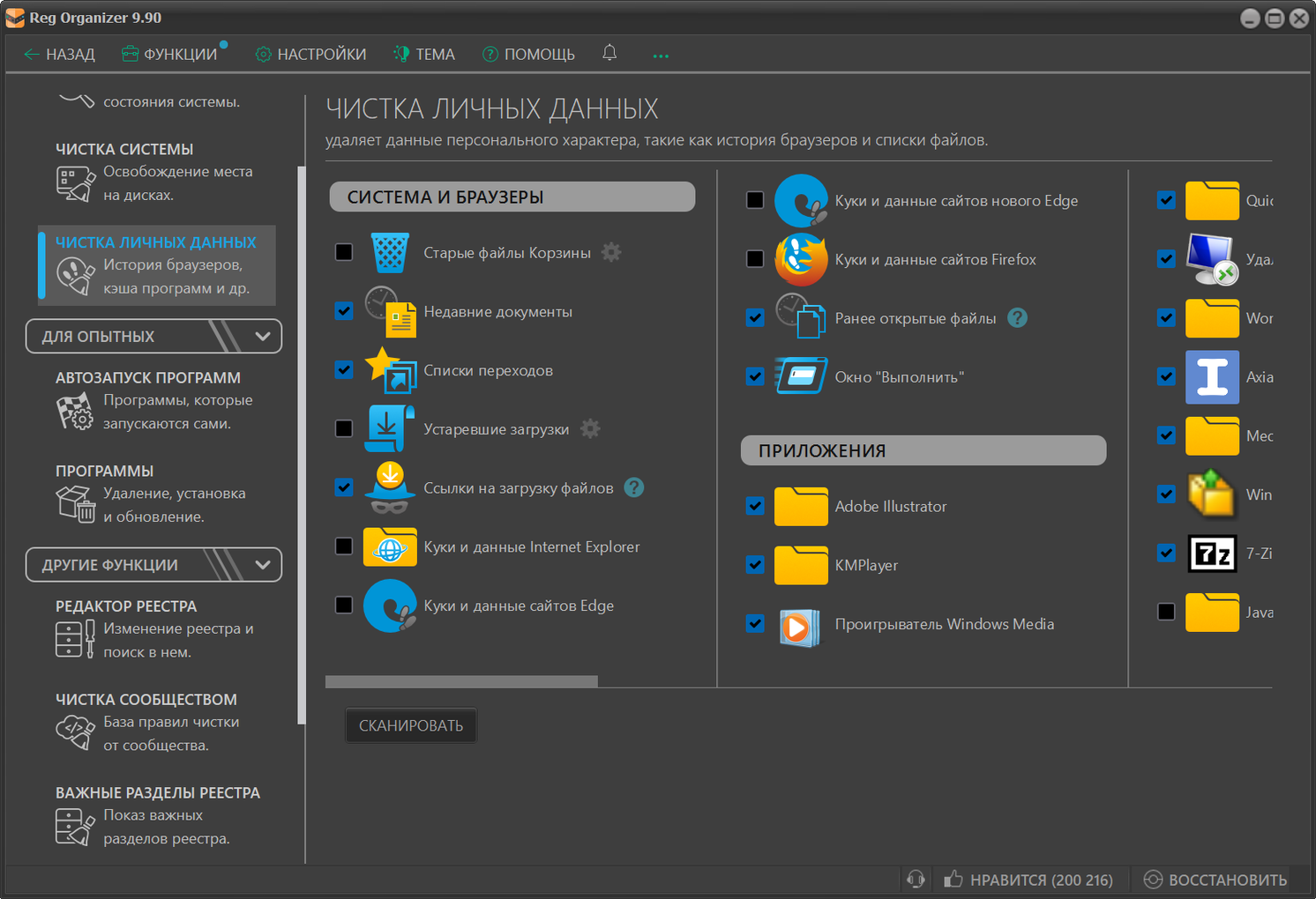 Основные возможности Reg Organizer: