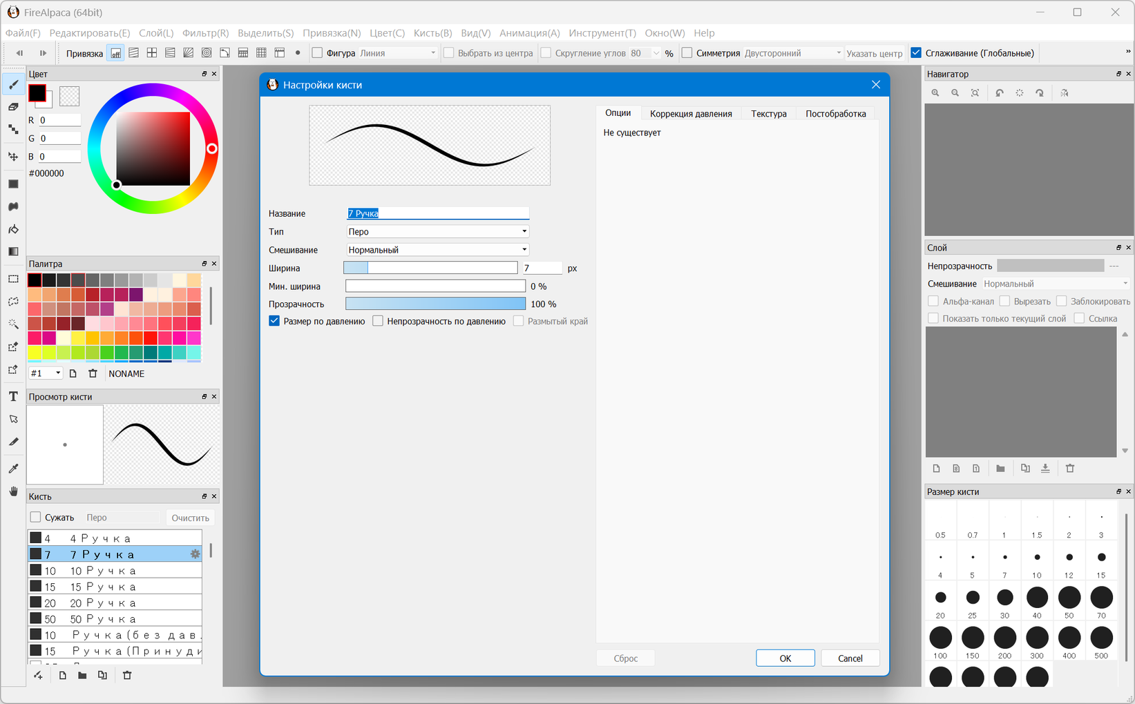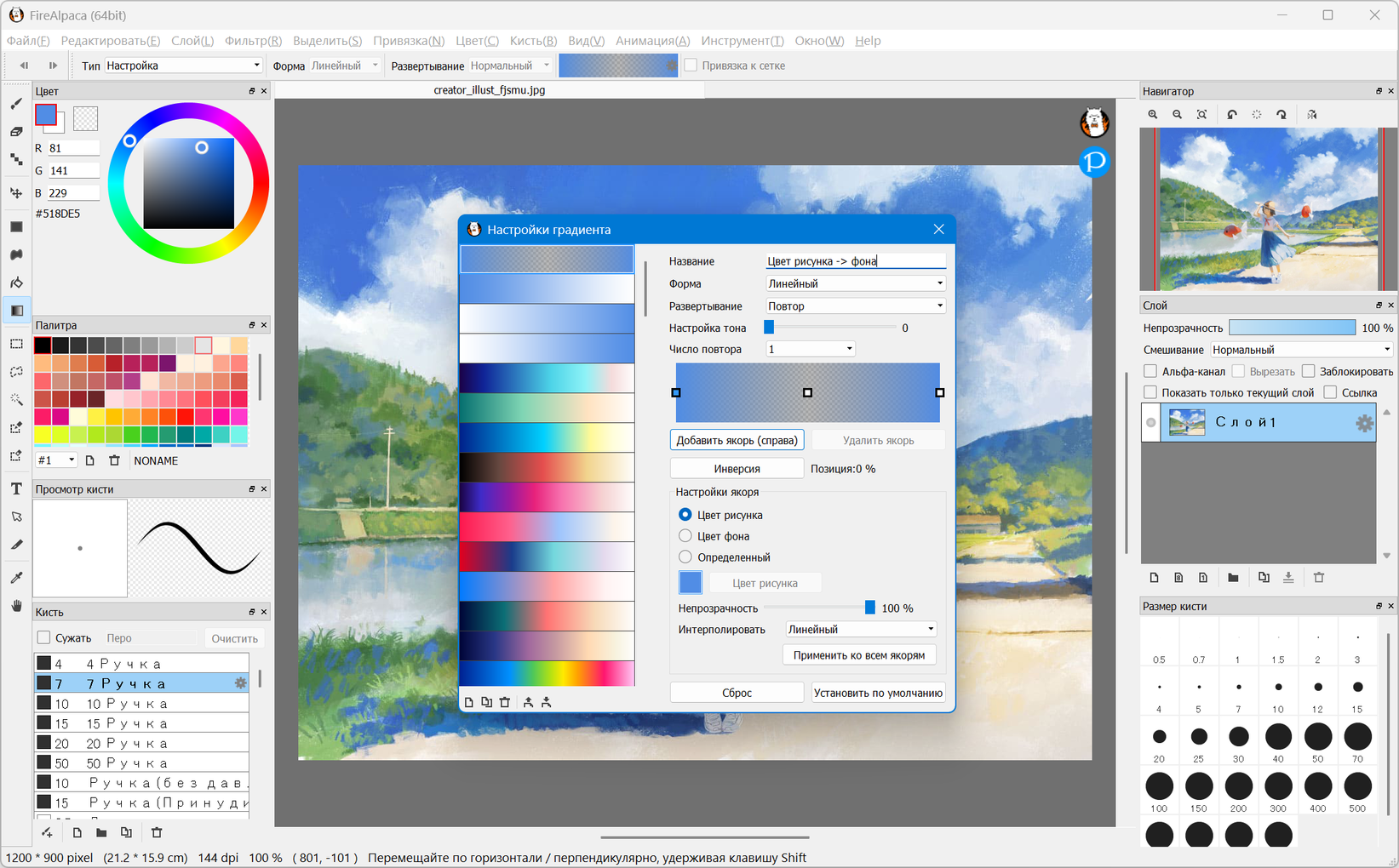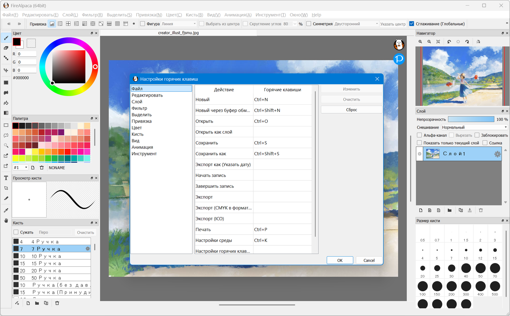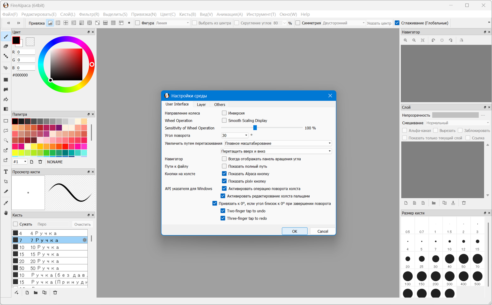 Что касается используемых в программе графических форматов, то это .psd, .jpg, .png, .bmp, .gif и .mdp (собственный формат FireAlpaca). Интерфейс программы выполнен в классическом и знакомом по другим графическим редакторам виде, что г
