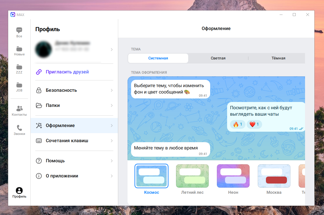 MAX – это не просто мессенджер, это ваш цифровой помощник, который всегда под рукой. Делитесь эмоциями с помощью анимированных стикеров, выражайте чувства реакциями в чатах, отправляйте файлы любого размера (до 4 ГБ) – все, что нужно, чтобы делиться важной информацией и хорошим настроением.