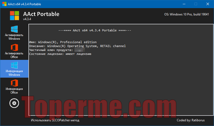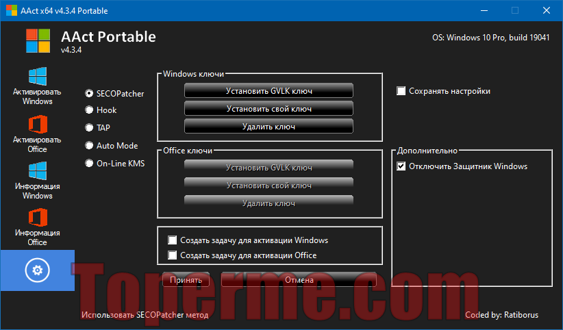 Не требует установки: AAct можно запускать в портативном режиме, что позволяет использовать его с USB-накопителей или на других устройствах без его установки на компьютер. Это добавляет удобства и мобильности для пользователей.