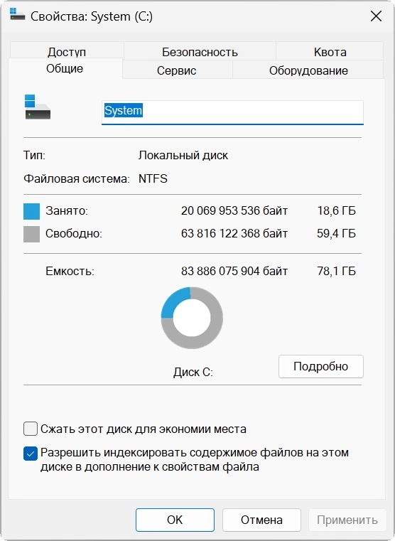 • Отключено зарезервированное хранилище