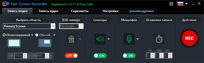 Зарегистрированная версия Fast Screen Recorder не имеет ограничений по длине видео и количеству видеозаписей.