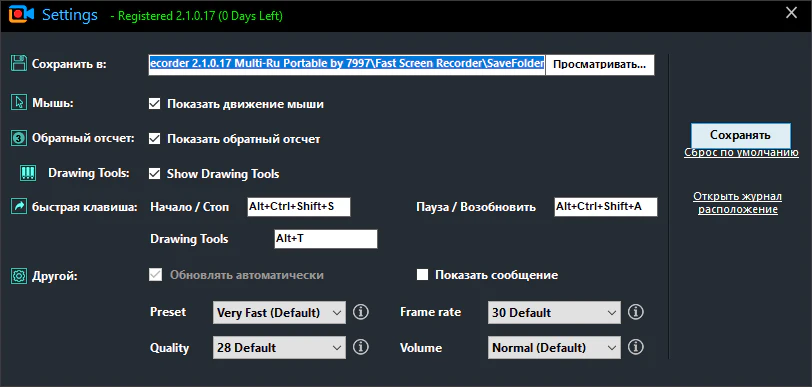 Fast Screen Recorder 2.1.0.17 Portable by 7997 -Версия программы: 2.1.0.17