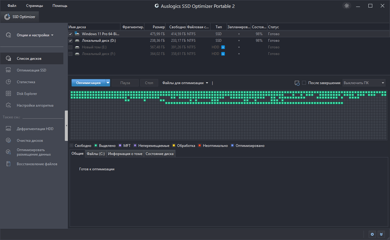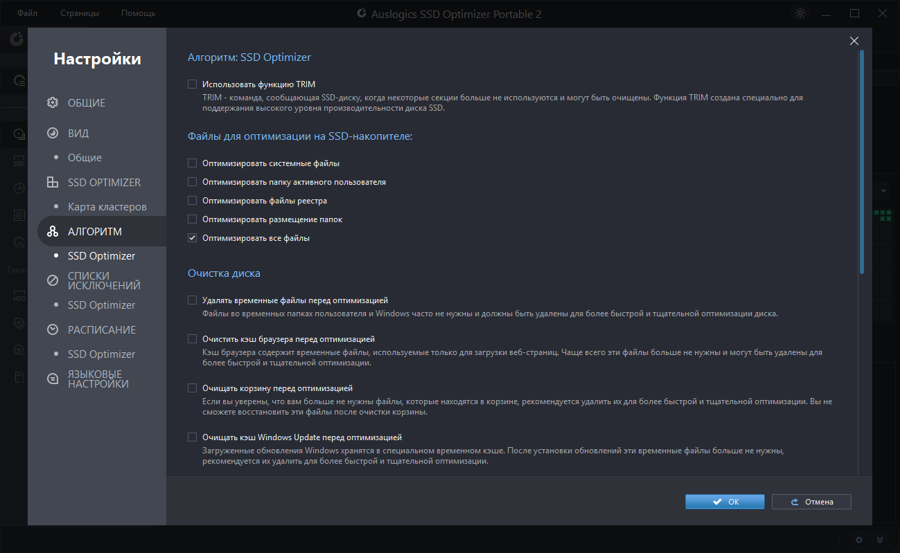 С помощью SSD Optimizer вы можете очистить диск от ненужных файлов перед запуском оптимизации, чтобы меньше данных перемещалось во время операции.