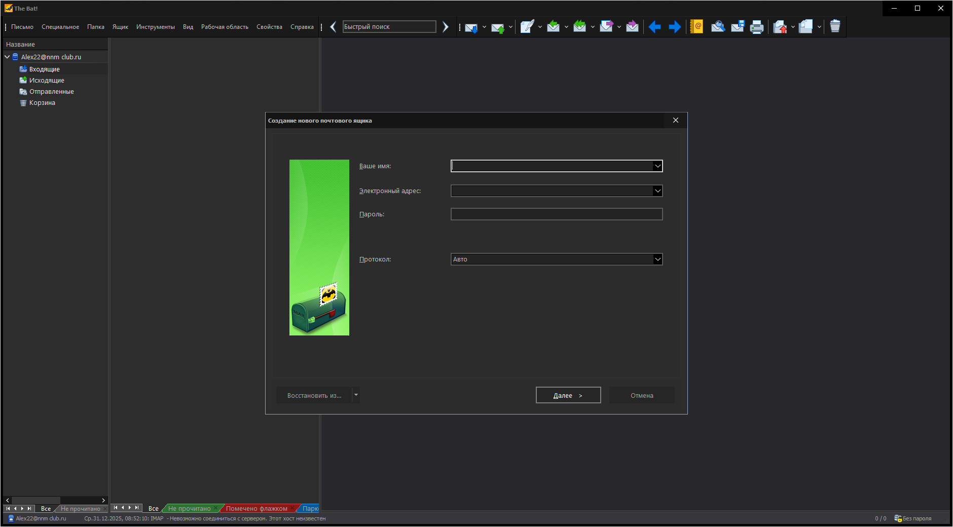 Резервное копирование.Все настройки программы, адресные книги и почтовые папки могут быть сохранены в отдельном файле и затем восстановлены из резервной копии в случае нежелательного изменения информации или потери данных. Архив можно снабдить комментарием и защитить паролем. Кроме того, The Bat! позволяет создавать отдельную резервную копию для каждого почтового ящика.