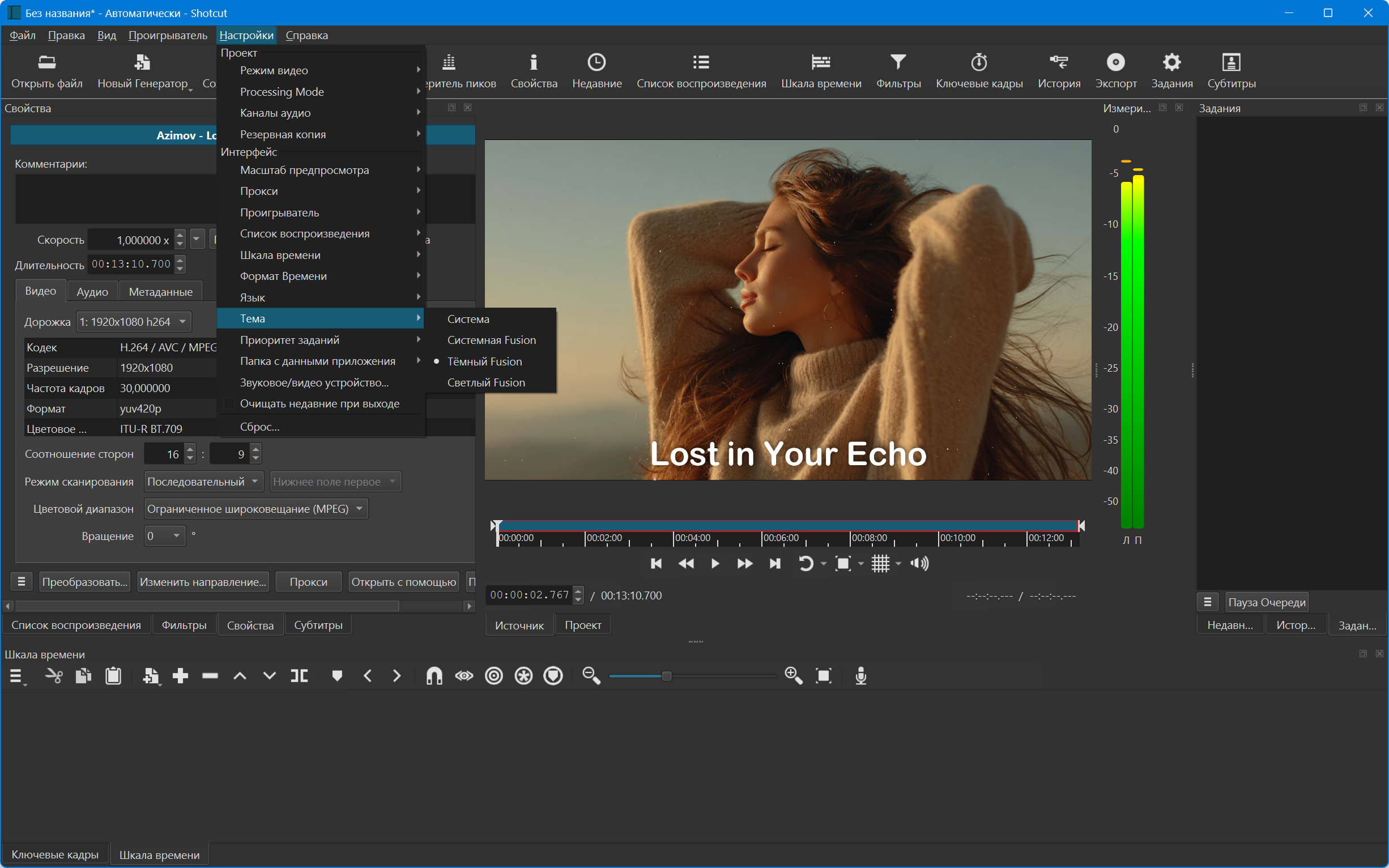 Shotcut — это бесплатное, кроссплатформенное приложение с открытым исходным кодом, предоставляющее пользователям простой и быстрый способ выполнения стандартных операций по обработке видео. Благодаря широкому набору настраиваемых аудио- и видеофильтров, программа позволяет легко редактировать и создавать коллажи из видеороликов. Shotcut также предлагает гибкие настройки видео и аудио, включая выбор частоты дискретизации, подходящего кодека, регулировку качества изображения и громкости. Присутствует возможность lossless-перекодирования (без потерь качества), а также преобразования видеоклипов в любой из поддерживаемых видеоформатов.