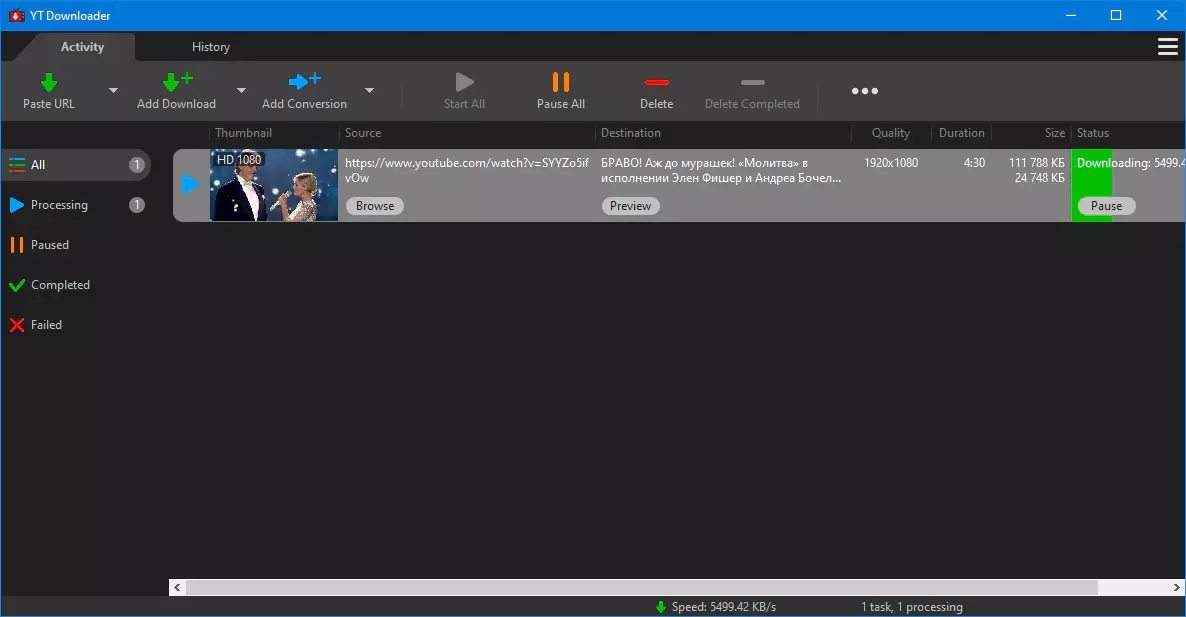 YT Downloader имеет продвинутый механизм ускорения загрузки, который позволяет загружать видео на 500% быстрее, чем обычная скорость.