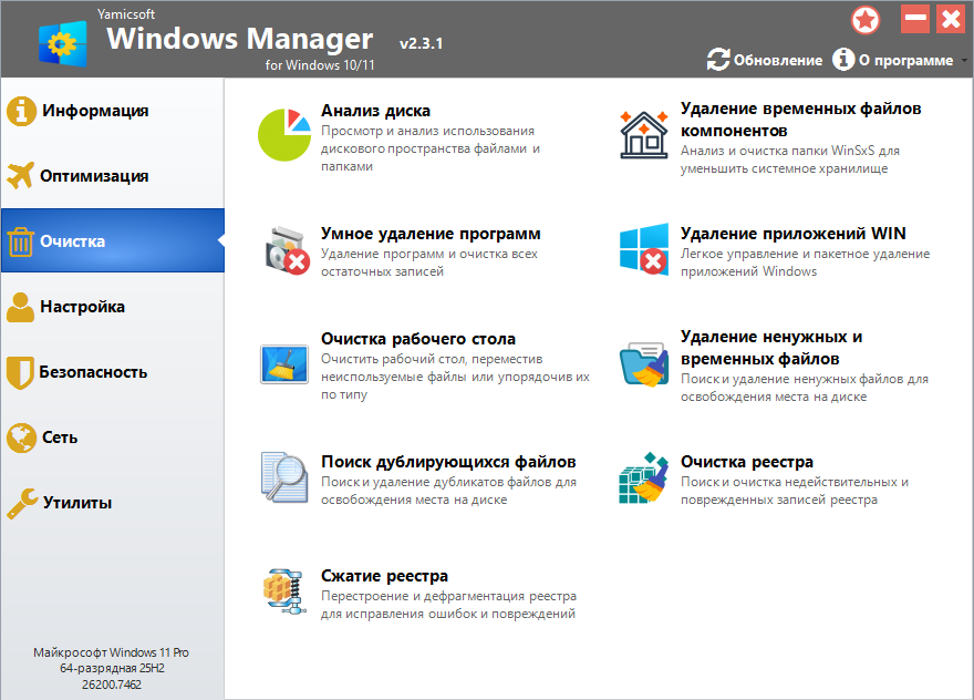 Windows Manager – это не просто утилита, а целый арсенал инструментов, призванных вывести вашу Windows 10/11 на новый уровень производительности. Сочетая в себе более сорока функций, этот комплексный пакет предлагает решения для оптимизации, тонкой настройки, восстановления и очистки вашей операционной системы. От повышения быстродействия и устранения системных сбоев до усиления безопасности и персонализации интерфейса – Windows Manager станет вашим незаменимым помощником в поддержании Windows 10/11 в идеальном состоянии, превосходя все ожидания.