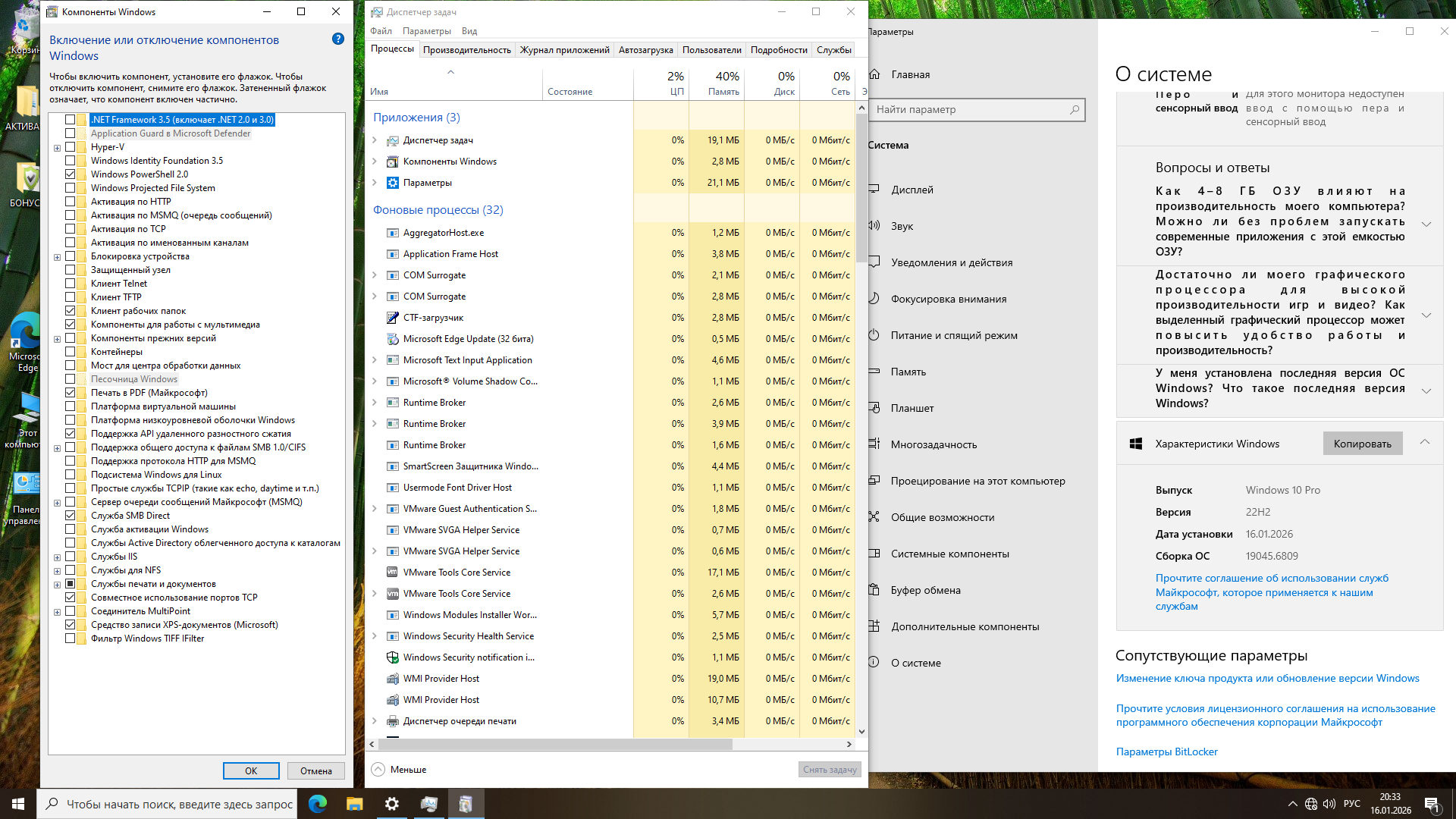 —Включен .Net Framework 3.5 (включая 2.0 и 3.0);