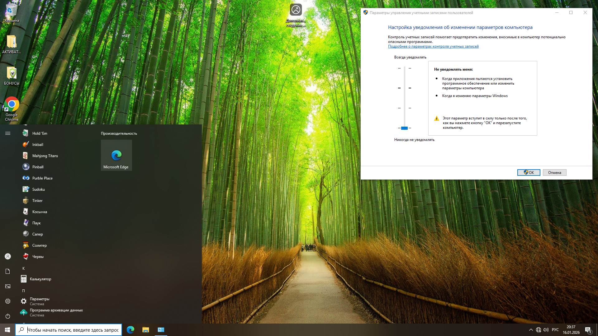 —Контроль учётных записей UAC отключена