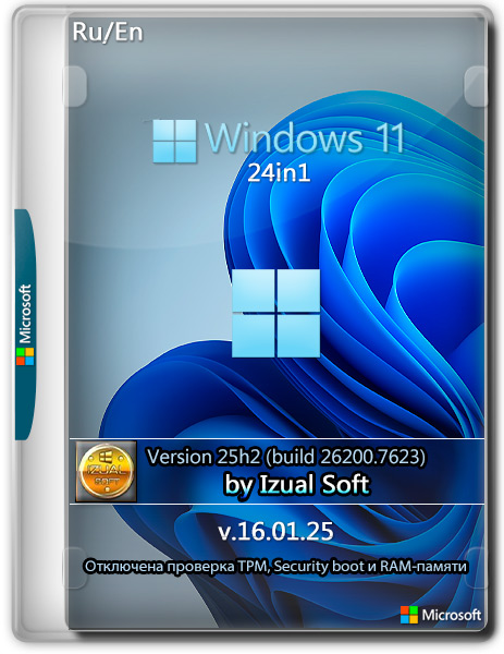 Windows 11 25h2 (build 26200.7623) (24in1) (x64) NoStore NoApp Nodefender by Izual Soft [v16.01.26] [Ru_En].iso