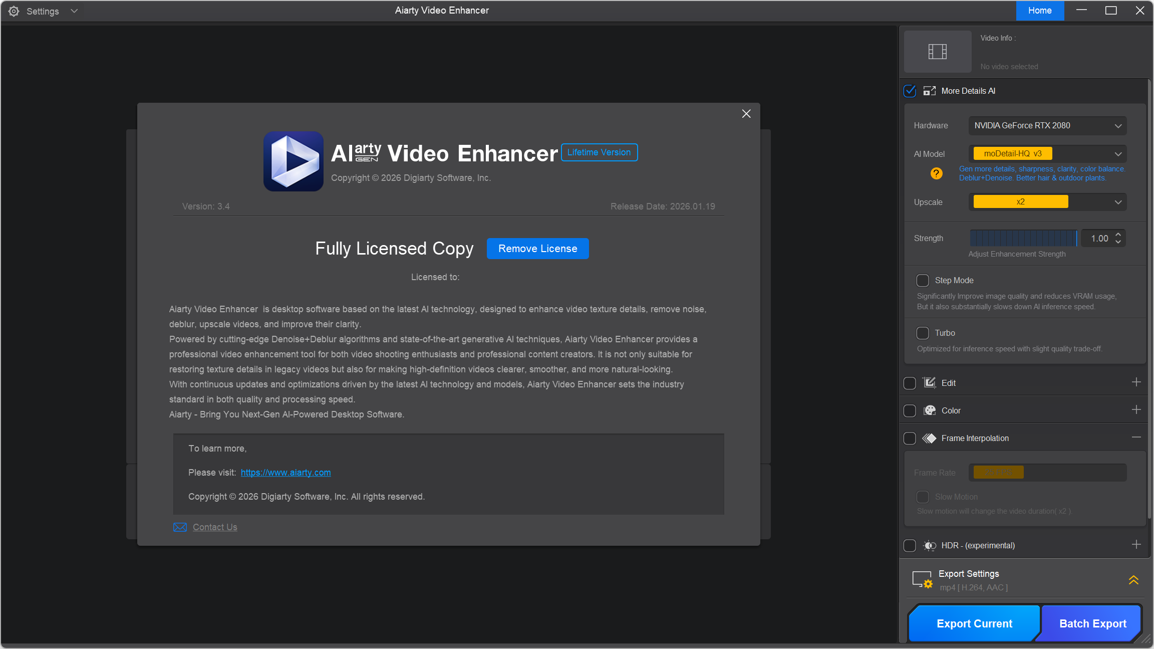 Aiarty Video Enhancer 3.4 -Версия программы: 3.4