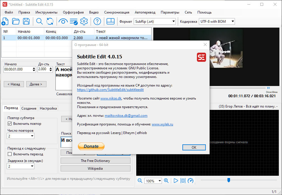 • Проигрыватель видео использует DirectShow, VLC Media Player и MPlayer.