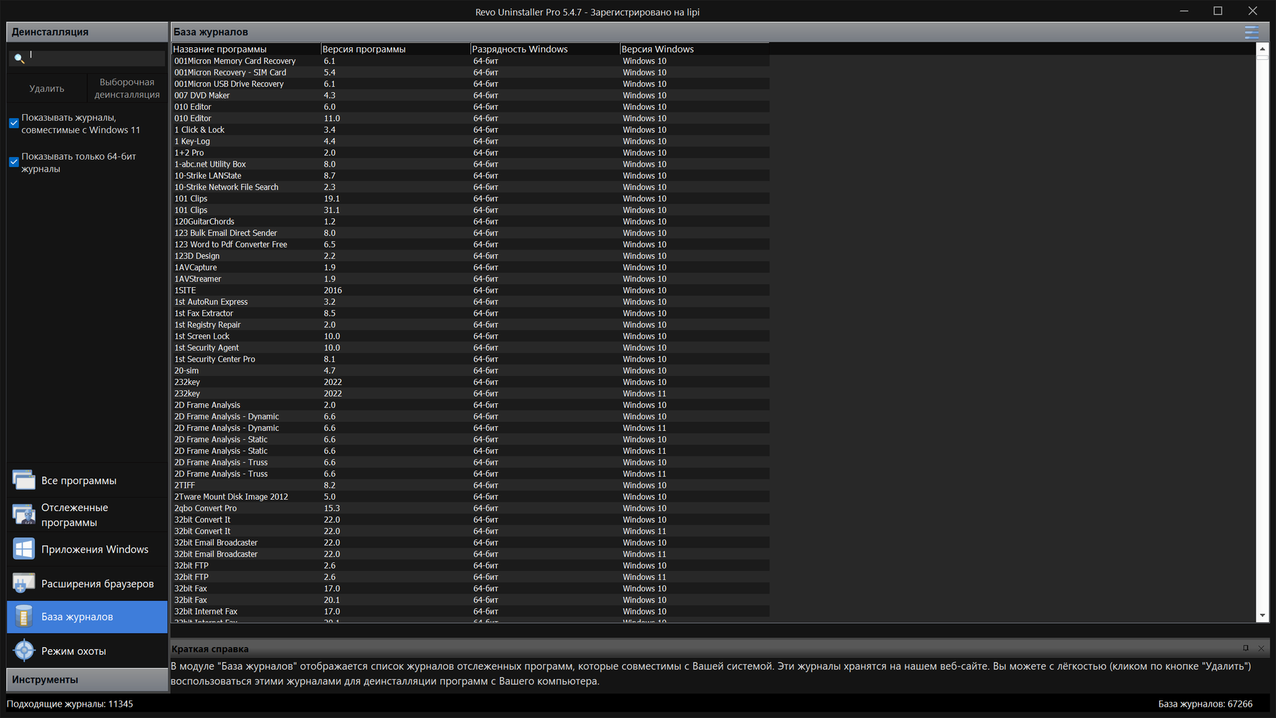 База данных журналов Revo Uninstaller Pro - это большая коллекция зaписей о работе различных программ. Эти журналы были созданы нашей командой с помощью функции Мониторинга в реальном времени и хранятся на нашем сервере. Они работают как записи, которые пользователи могут создавать самостоятельно, и позволяют удалять программы или проводить дополнительную очистку остaтков если есть сомнения или для устранения ошибок.