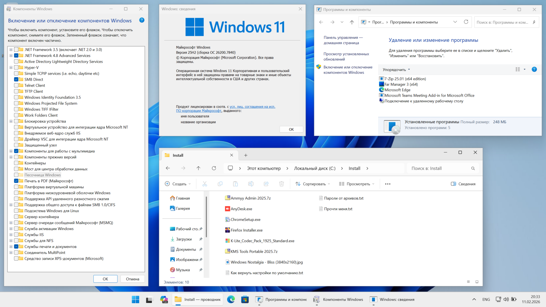 Windows 11 25H2 5в1 Февраль 2026 [26200.7840] x64 Ru(En) by ivachka08-Версия: 26200.7840 (10.02.2026)