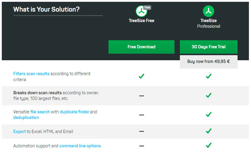 TreeSize предлагает мощный поиск дубликатов файлов, опционально с контрольными суммами MD5 или SHA256.