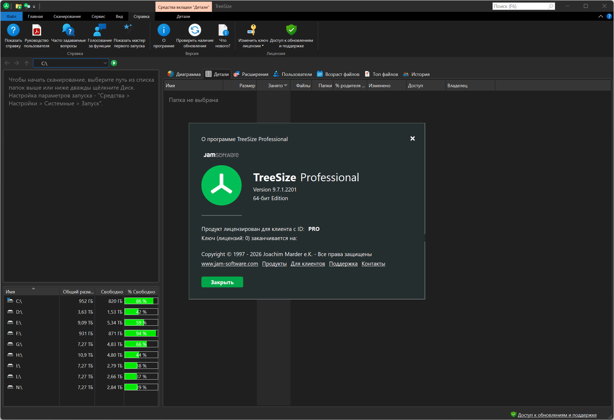 TreeSize Professional 9.7.1.2201 -Версия программы: 9.7.1.2201