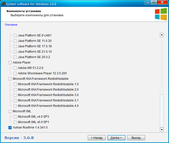 -Microsoft Visual С++ (2005-2008-2010-2012-2013-2019-2022-2026 x86 и x64 + Visual Studio 2010 F# Runtime 2.0 + F# Runtime 4.0 + Visual Basic 6.0 Runtime Plus 2.2 + Visual J# 2.0 Redistributable Package + Visual Basic 7 Runtime)