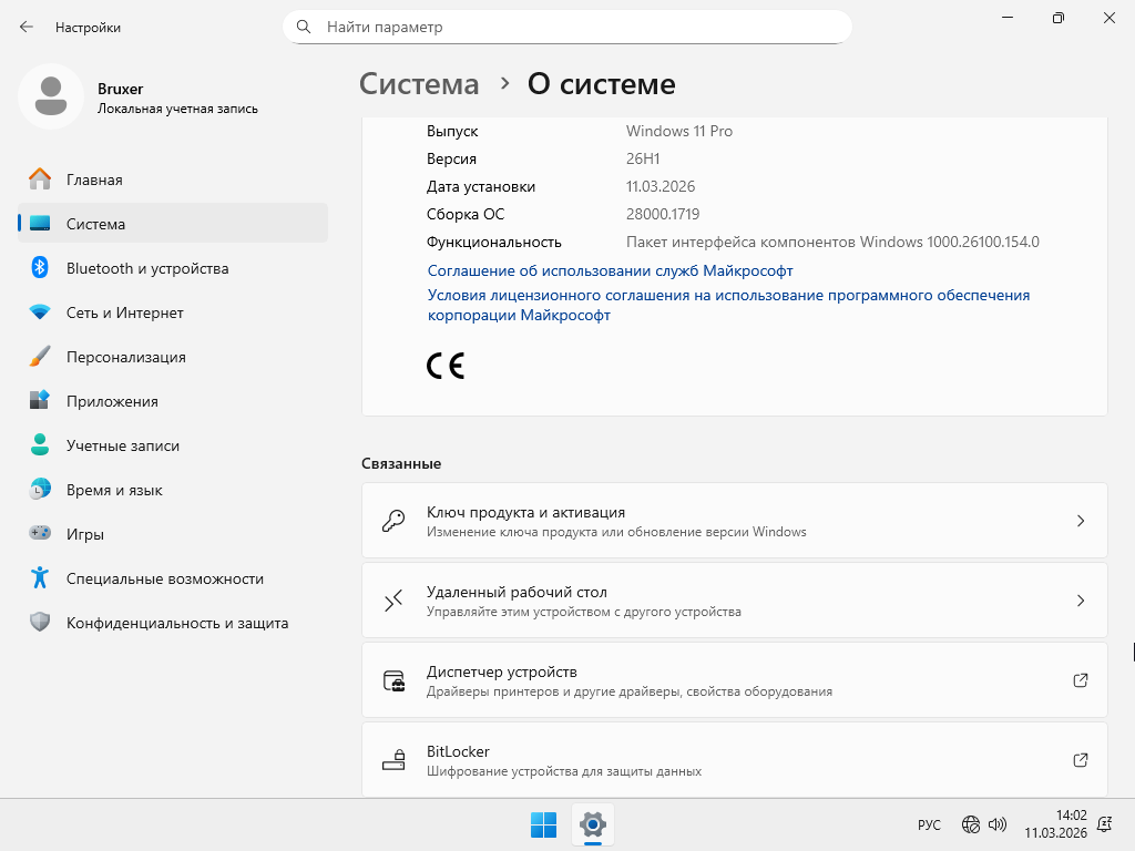 Windows 11 Pro 26H1 Mini Lite (build 28000.1719) x64 by Bruxer [RU]