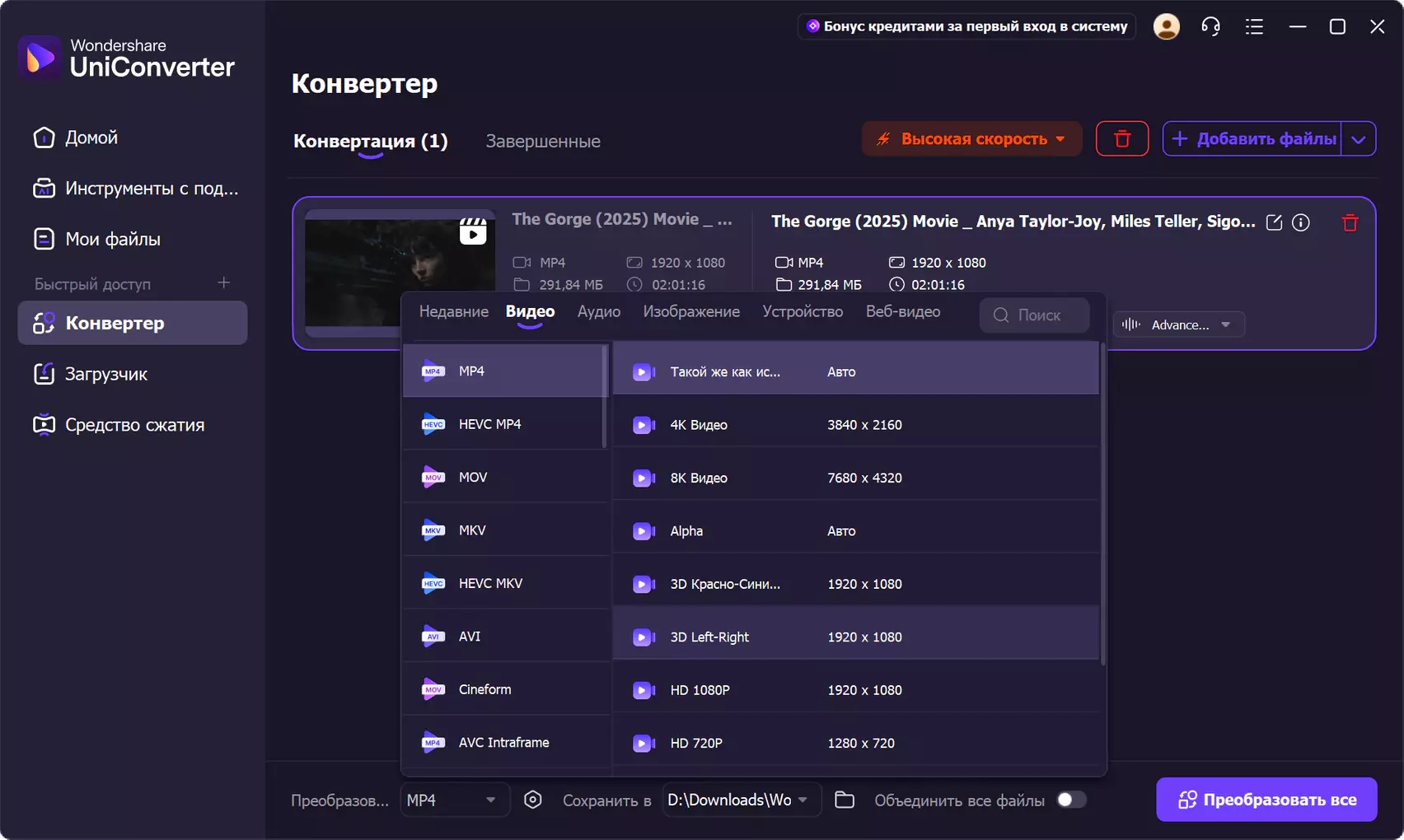 Ощутите кинотеатр дома. Конвертируйте любые 2D-видео в 3D-формат на сверхвысоких скоростях.