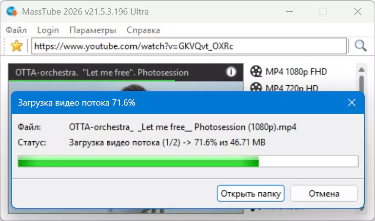 MassTube — простая в использовании утилита, которая делает скачивание видео с YouTube и не только максимально понятным и быстрым. Достаточно вставить адрес понравившегося ролика в строку поиска и нажать поиск — программа мгновенно анализирует доступные форматы и разрешения и предлагает ровно те варианты, которые реально поддерживаются источником. Никаких лишних опций: вы видите только те форматы, которые можно скачать прямо сейчас. Интерфейс минималистичный и понятный, установка не нужна — MassTube запускается сразу. Выберите нужное качество (например, 1080p, 720p) и формат (MP4, WEBM) одним кликом. Поддерживаются и другие площадки помимо YouTube, что делает MassTube универсальным инструментом для разных целей. Утилита автоматически обновляет список поддерживаемых форматов и сайтов, чтобы вы всегда имели актуальные варианты загрузки. Для тех, кто ценит скорость и простоту, MassTube становится надежным спутником: загрузка без лишних действий, без задержек и с минимальным количеством шагов.