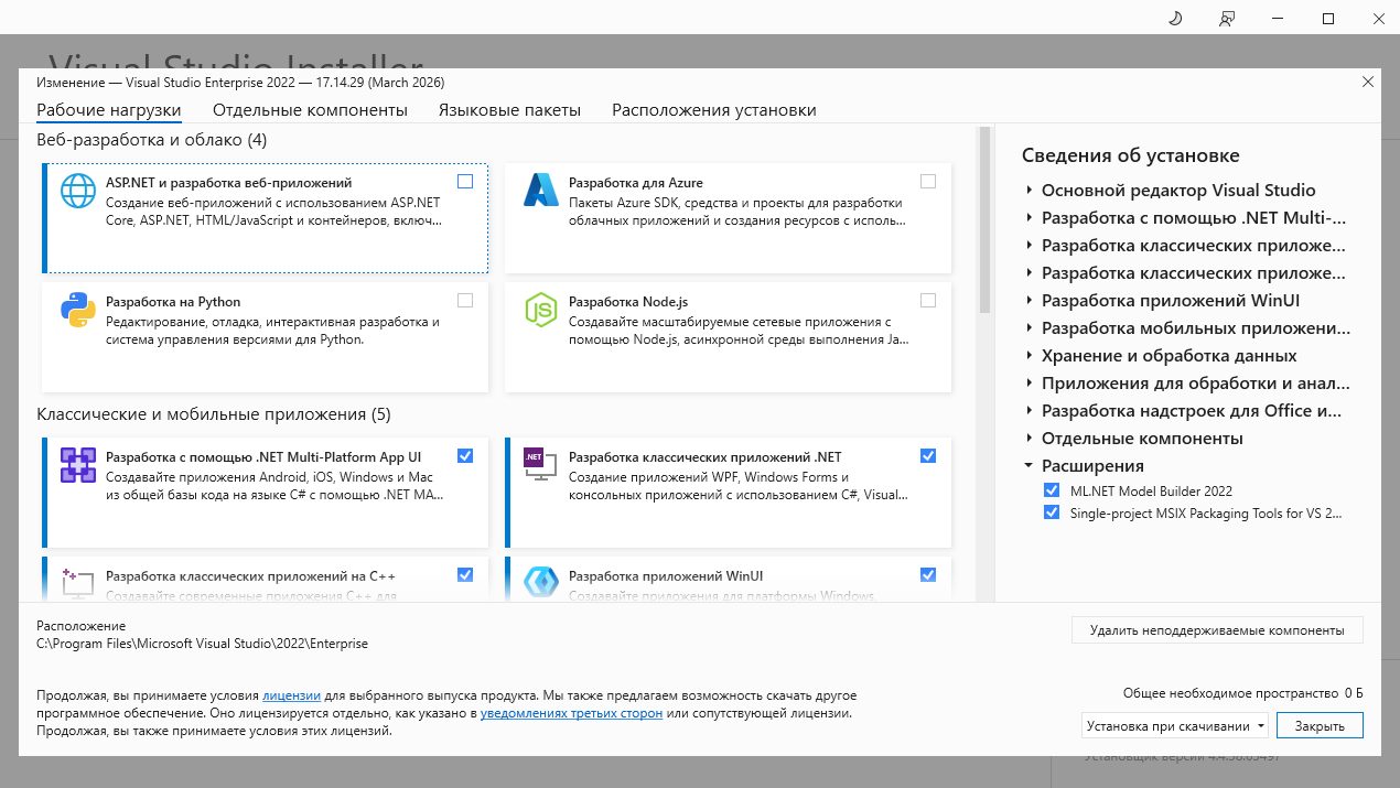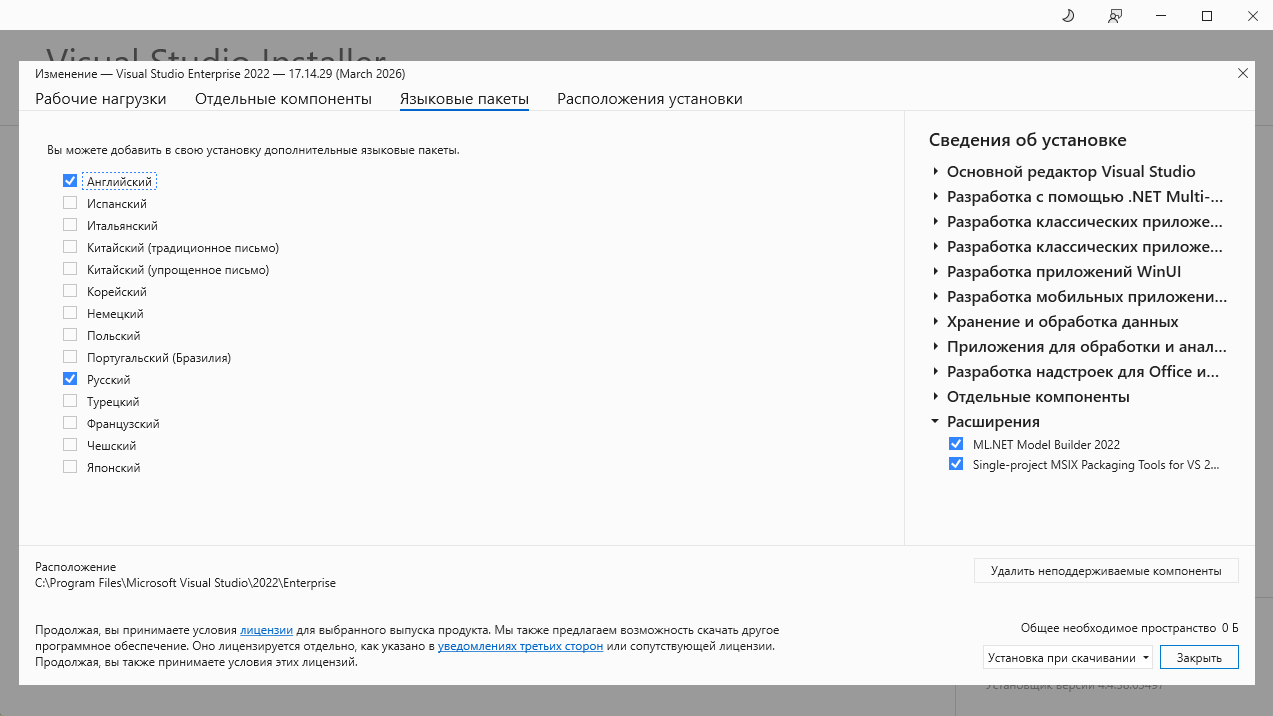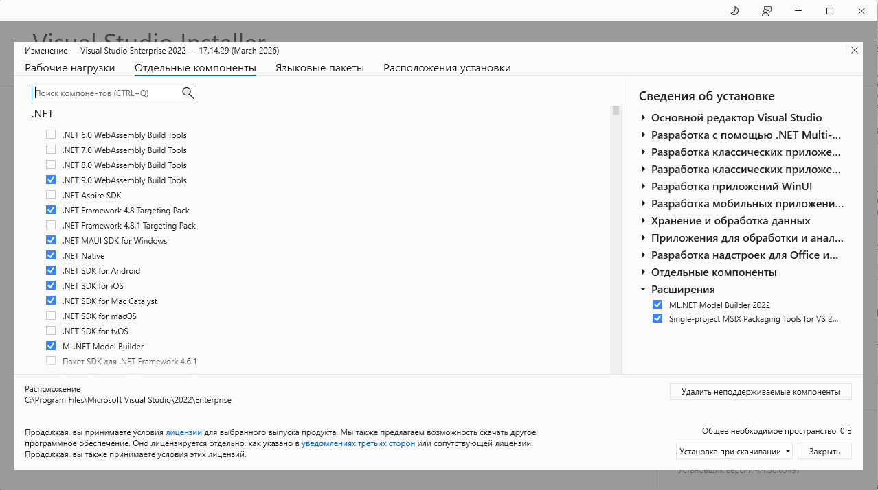-Для установки Visual Studio требуется .NET Framework 4.7.2 или более поздняя версия . (Для установки Visual Studio версии 17.8 и более ранних версий требуется .NET Framework 4.5.2 или более поздняя версия.) Для работы Visual Studio требуется .NET Framework 4.8. Если .NET Framework 4.8 ещё не установлен, он будет установлен во время установки.