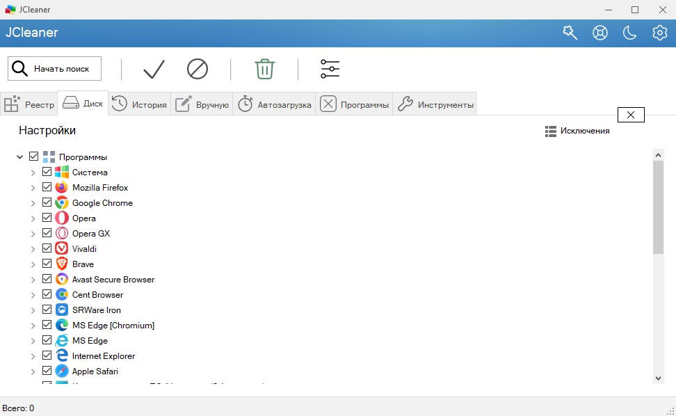 • Поиск и удаление мусорных файлов