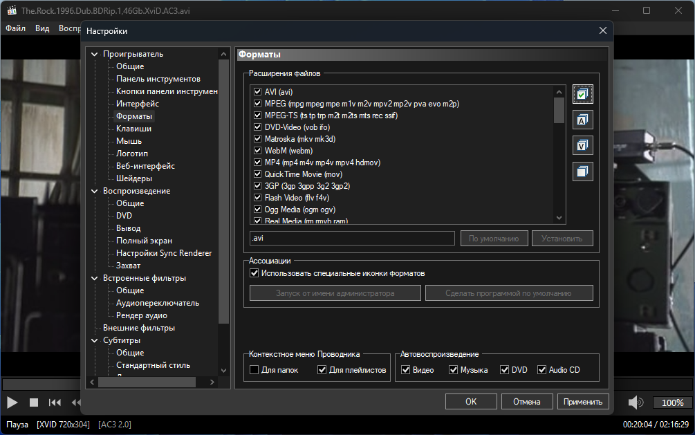 • Воспроизведение файлов любых форматов, поддерживающих DirectShow, например, DivX, XviD, H.264.