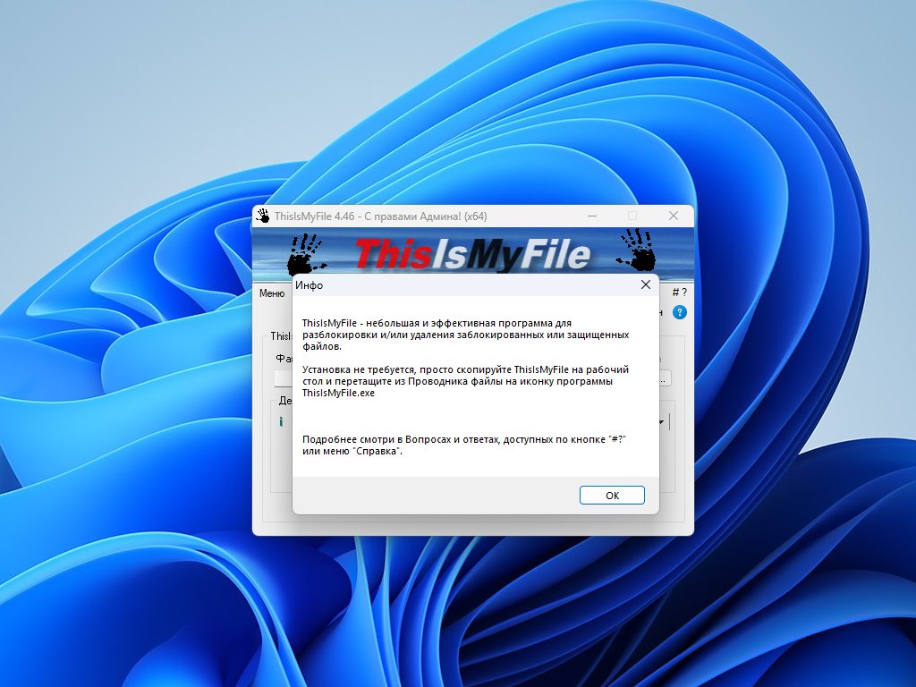 ThisIsMyFile — это компактное, но весьма мощное приложение, разработанное для решения распространенной проблемы — разблокировки и/или удаления файлов и папок, которые по разным причинам становятся недоступными для обычных операций. Программа предоставляет удобные и эффективные инструменты для борьбы с "упрямыми" файлами.