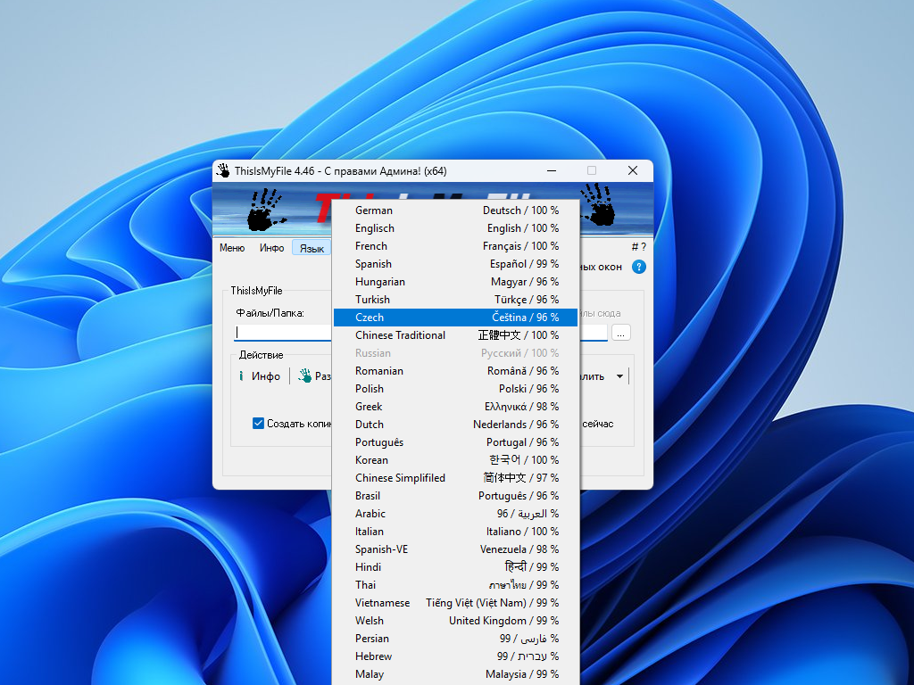 • Для портативного использования, пожалуйста, создайте или скопируйте в рабочую директорию ThisIsMyFile файл ThisIsMyFile.ini.
