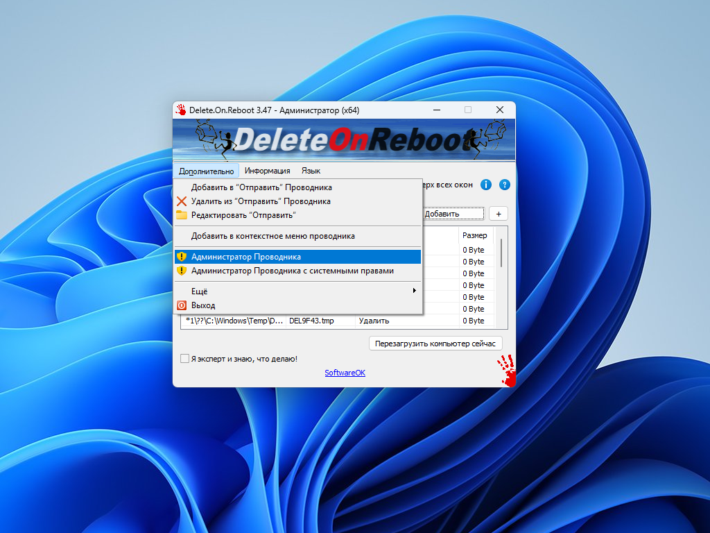 Основные возможности программы Delete.On.Reboot: