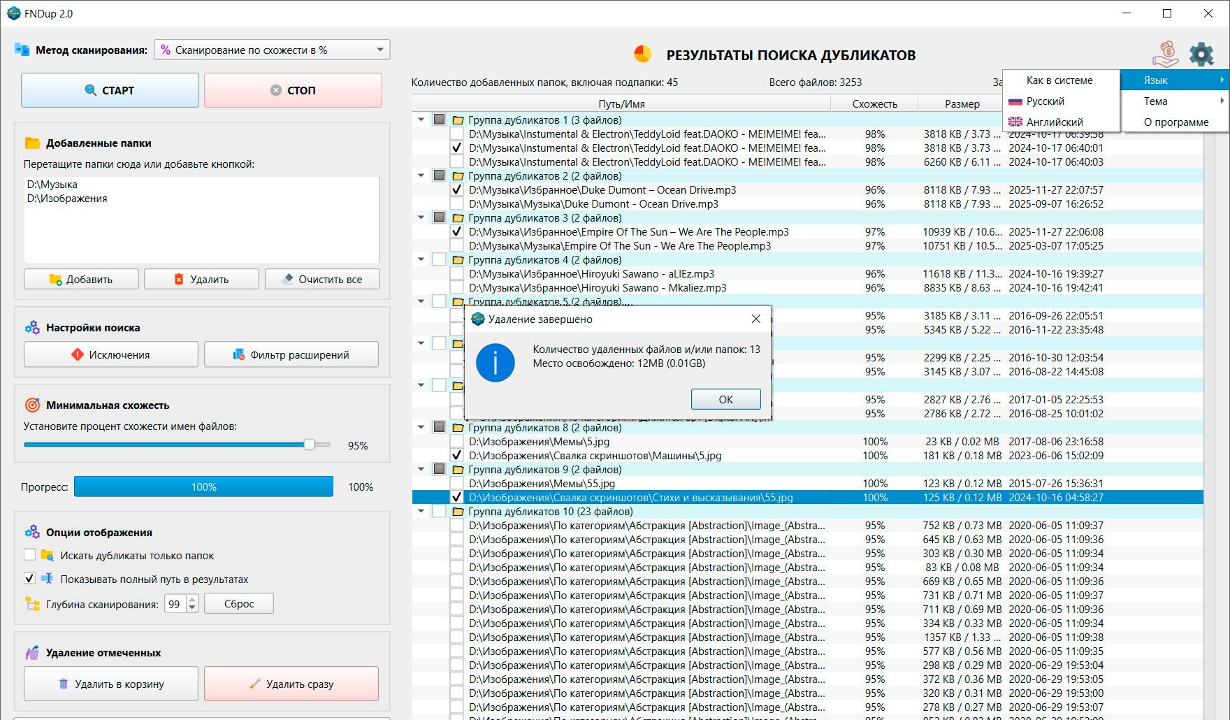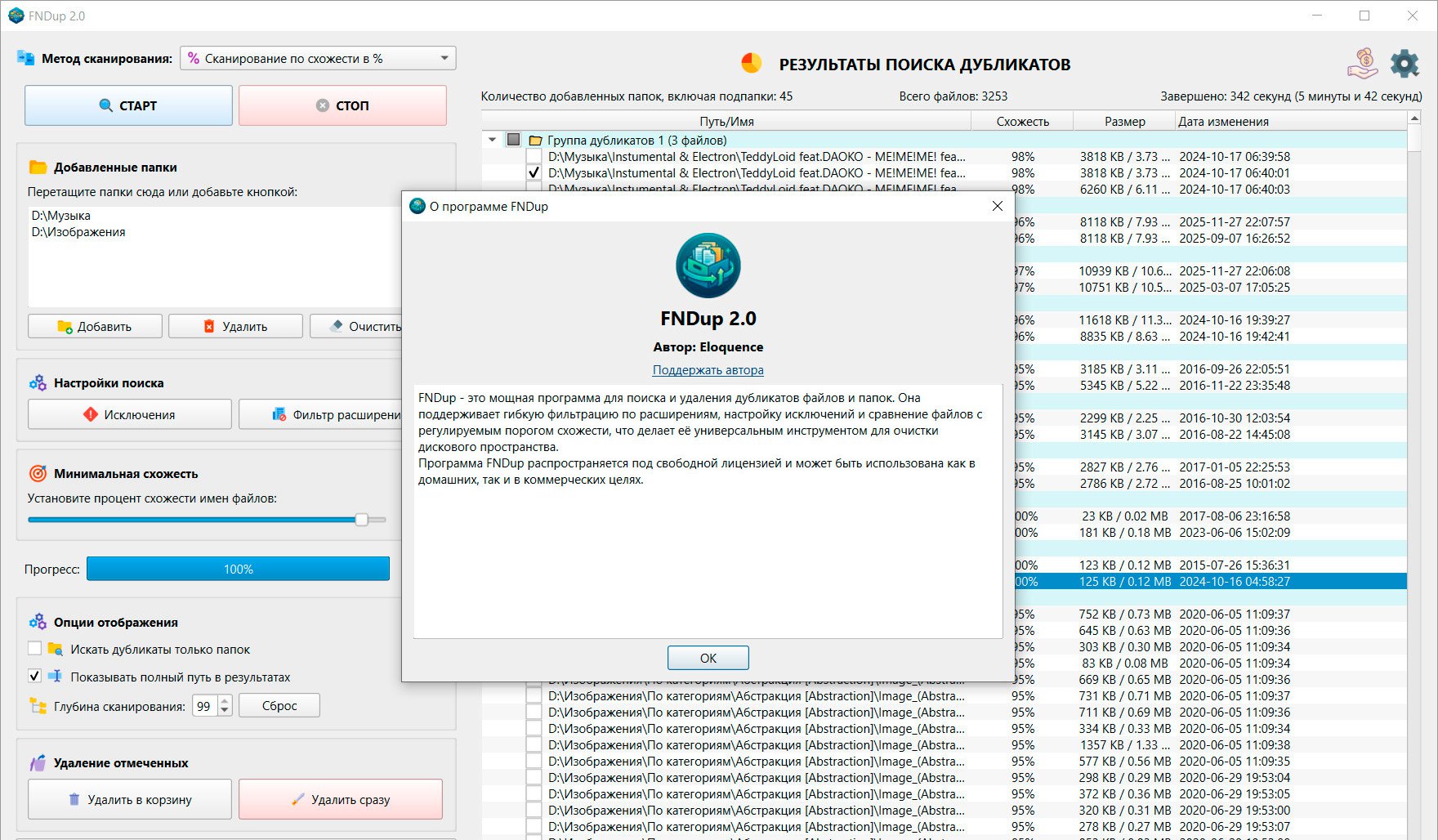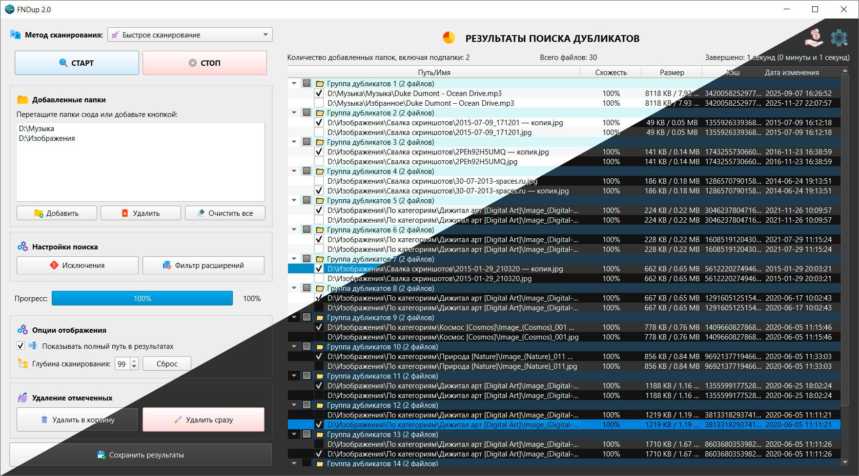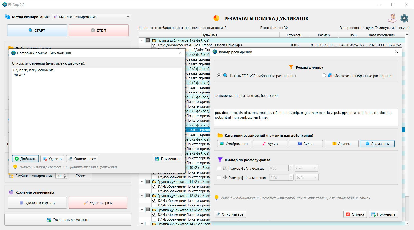 FNDup поиск дубликатов осуществляется двумя способами. Поиск полностью идентичных файлов методом
