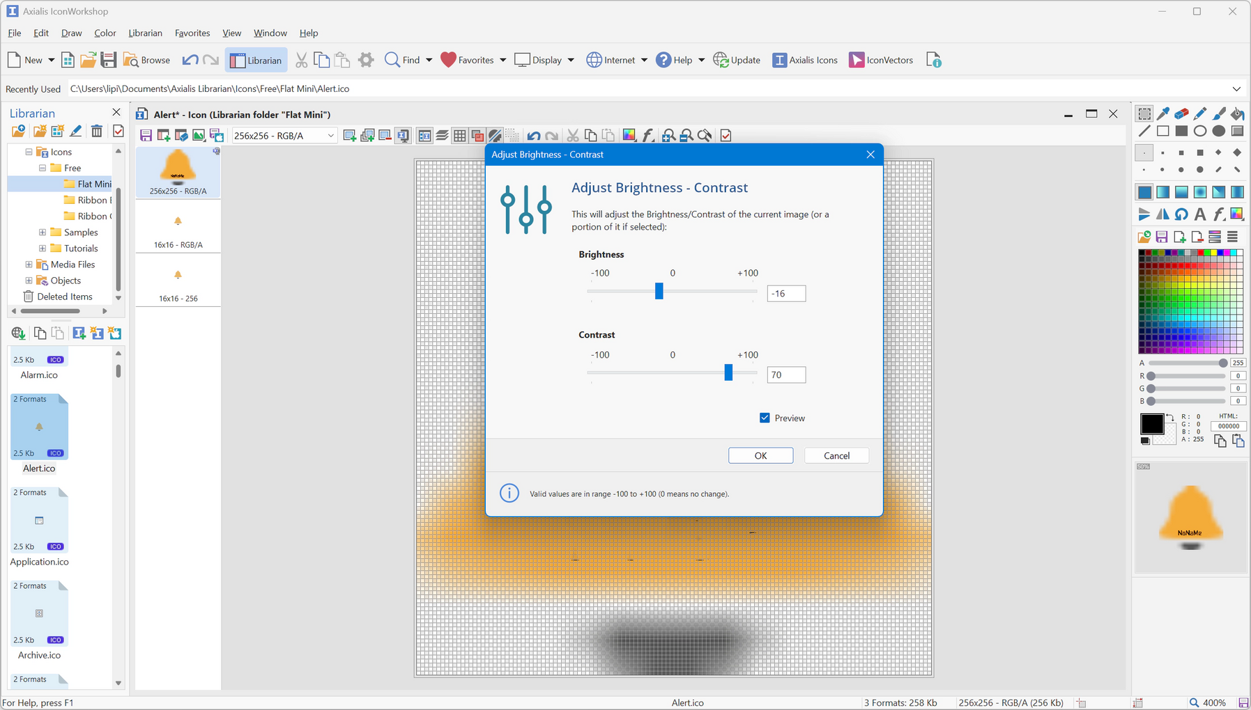 Эксклюзивная функция позволяет создать иконку с несколькими форматами изображений всего за одну операцию! Все делается автоматически: сохраняется альфа-канал, палитры рассчитываются для 256 цветовых форматов и даже генерируются 16 цветовых форматов с прозрачностью: