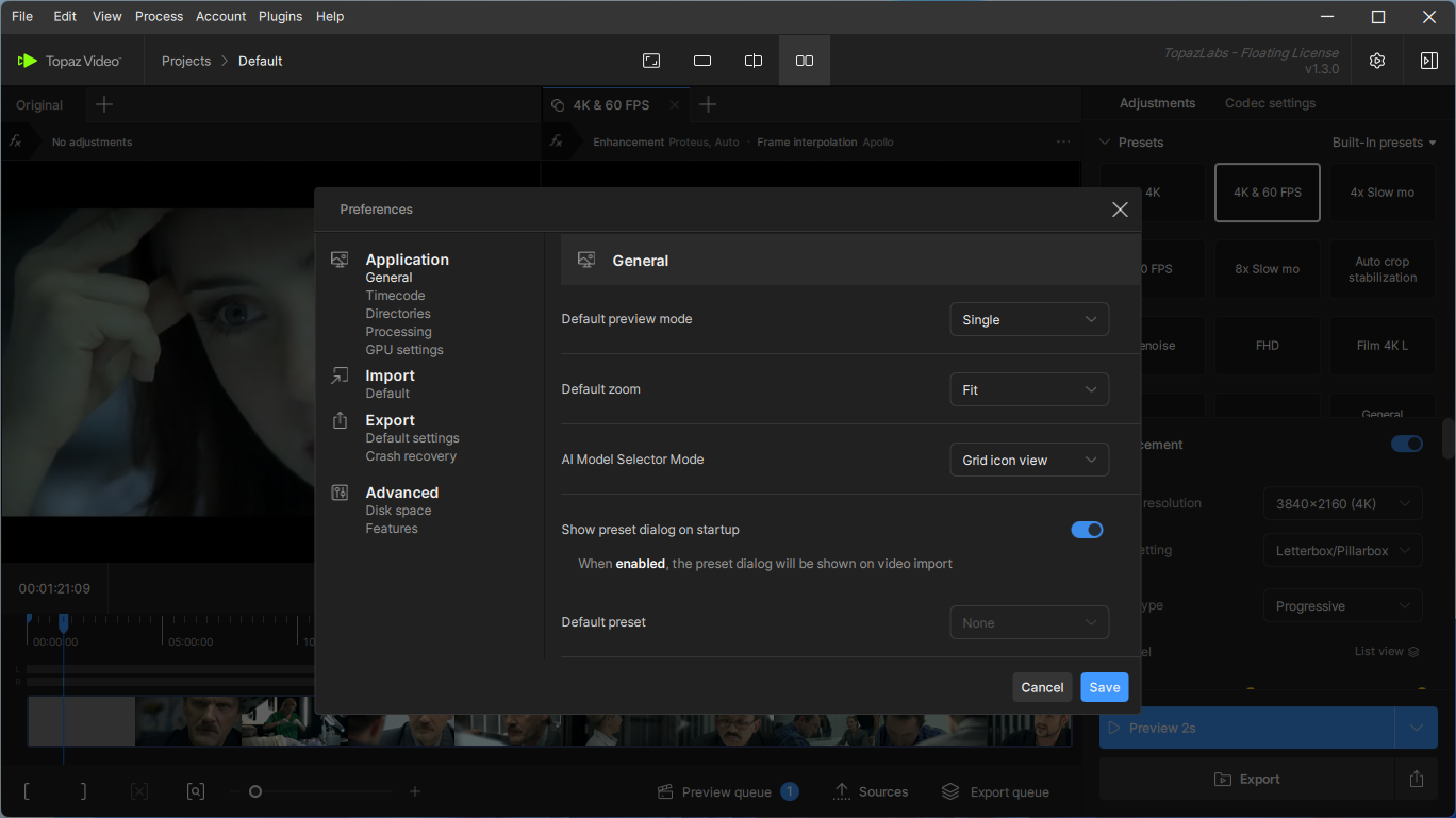 Topaz Video – это совершенное новое решение для увеличения видео, с использованием искусственного интеллекта. Обученный работе с тысячами видео и сочетающий в себе информацию из нескольких входных видеокадров, увеличит ваше видео до разрешения 8K с точными деталями и последовательностью движения. До сих пор не было возможности идеально воссоздать видео высокого разрешения из видеоряда низкого разрешения. Превратит ваши видео в чистые увеличенные кадры с разрешением до 8K, от старых домашних фильмов до низкокачественных SD и DVD.
