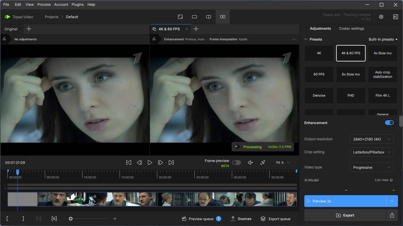 • Улучшение кадры до 8K. Video AI - это идеальный способ взять хорошие кадры и сделать их великолепными. Вы когда-нибудь хотели, чтобы ваши кадры выглядели четче с большей детализацией? Снимайте HD-видео вплоть до 8K для использования в высококачественных проектах. Эта программа идеально подходит для:
