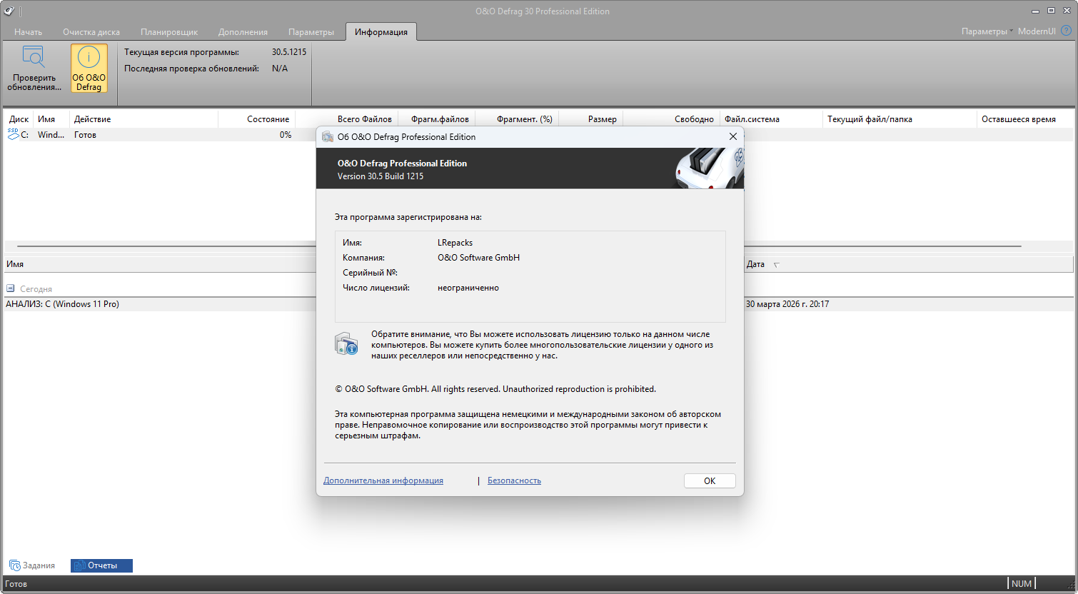 O&O Defrag Professional 30.5 Build 1215 RePack (& Portable) by elchupacabra -Версия программы: 30.5 Build 1215