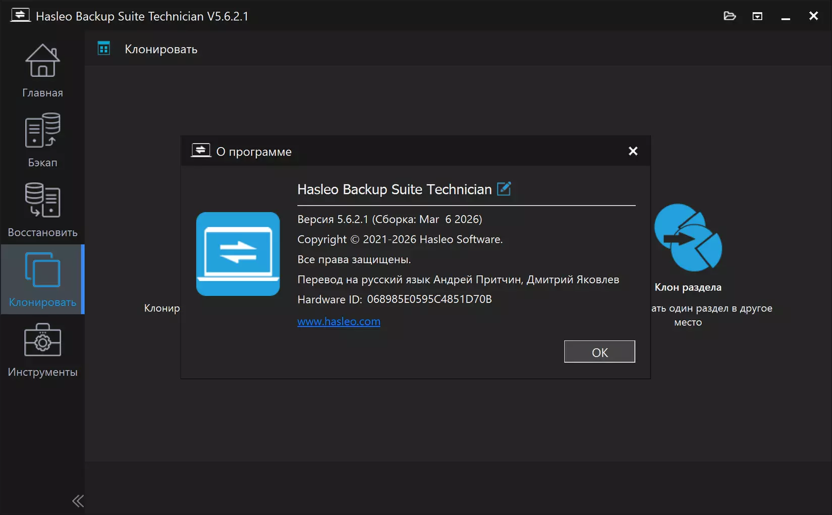 Hasleo Backup Suite 5.6.2.1 Home | Home Family | Professional | Workstation | Server | Eterprise | Technician -Версия программы: 5.6.2.1