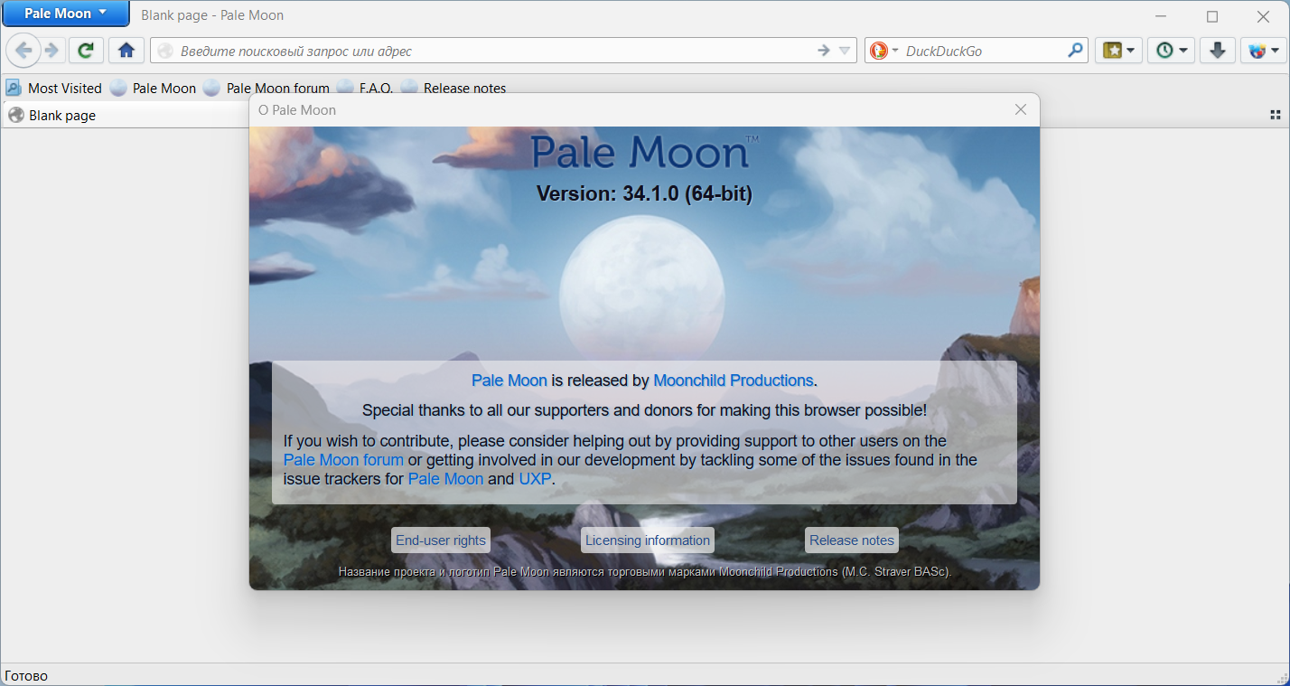 Если вам требуется какая-либо интеграция с рабочим столом (включая закреплённые элементы панели задач, запуск почтового приложения по ссылкам mailto:, запоминание папок загрузки по умолчанию и т. д.), рекомендуется использовать не Pale Moon Portable, а обычную настольную версию! Pale Moon Portable специально разработан для использования на съёмных носителях, подверженных быстрому износу и медленному доступу, что отражено в настройках по умолчанию.
