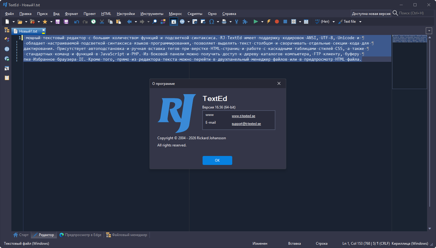 RJ TextEd 16.56 + Portable [Multi/Ru] -Версия программы: 16.56