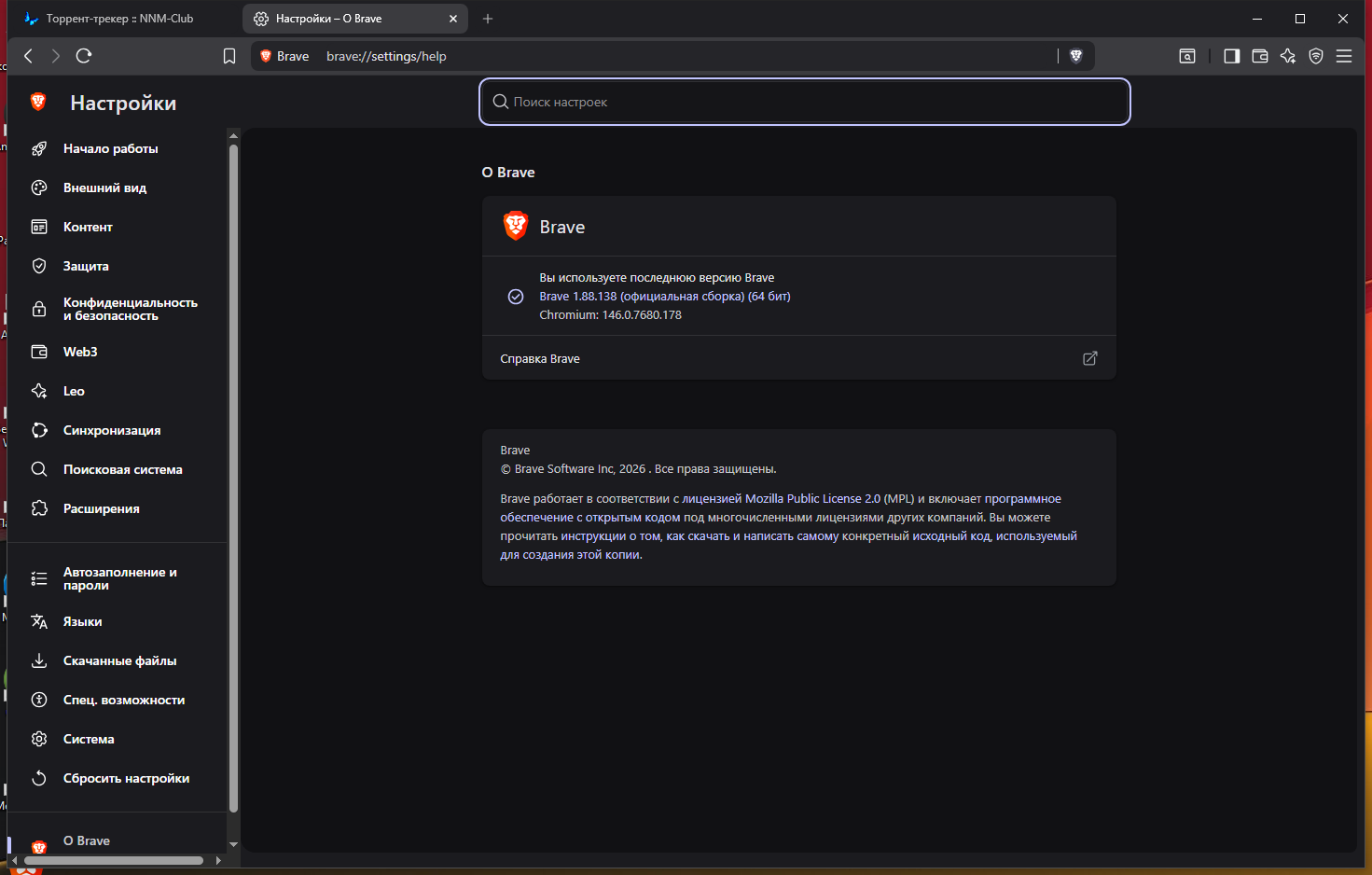 Brave Browser 1.88.138 -Версия программы: 1.88.138