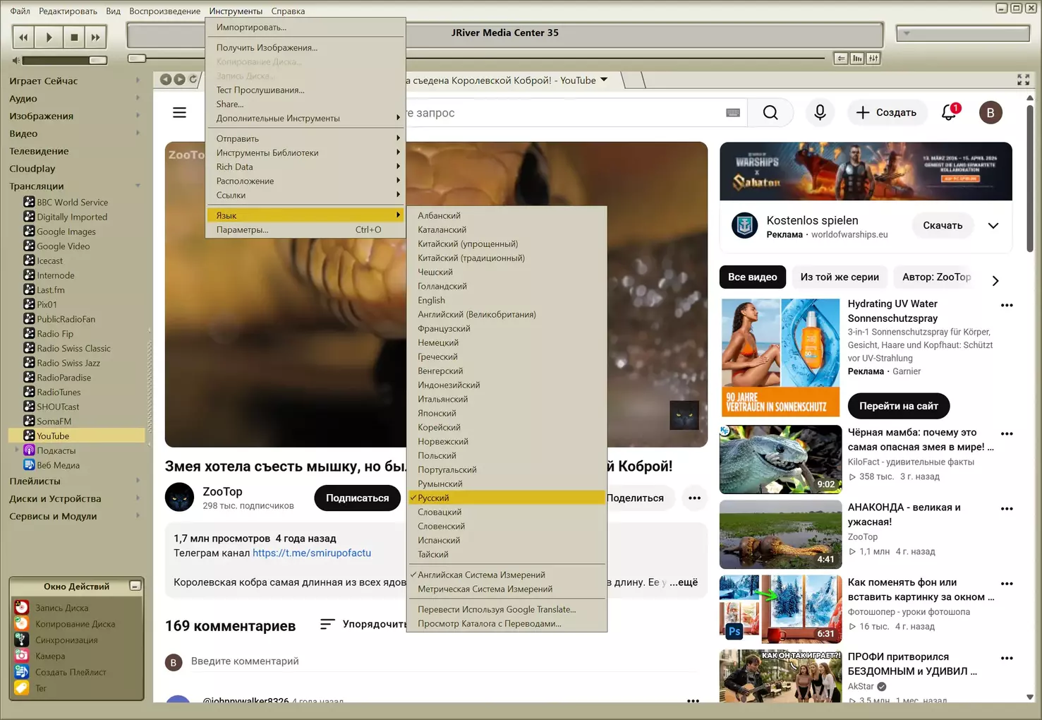 Кроме этого, есть очень хороший и мощный по своим возможностям органайзер мультимедийных файлов, медиа редактор, эквалайзер, встроенный DSP и удобный планировщик заданий для автоматизации процессов проигрывания/записи, а также поддержка пульта ДУ. Из необязательных, но приятных функций — становящаяся уже почти стандартом для "приличных" программ возможность изменения внешнего вида с помощью скинов, мини-режим проигрывателя и "телевизор" (c картами ATI). При помощи этой программы вы сможете с помощью компьютера управлять всеми подключенными к нему мультимедиа устройствами. С помощью этой программы вы сможете копировать музыку на портативные цифровые плееры, перемешать цифровые фотографии с камеры в цифровую библиотеку медиа-центра, записывать музыкальные диски, просматривать и записывать любимые телепрограммы и многое другое.
