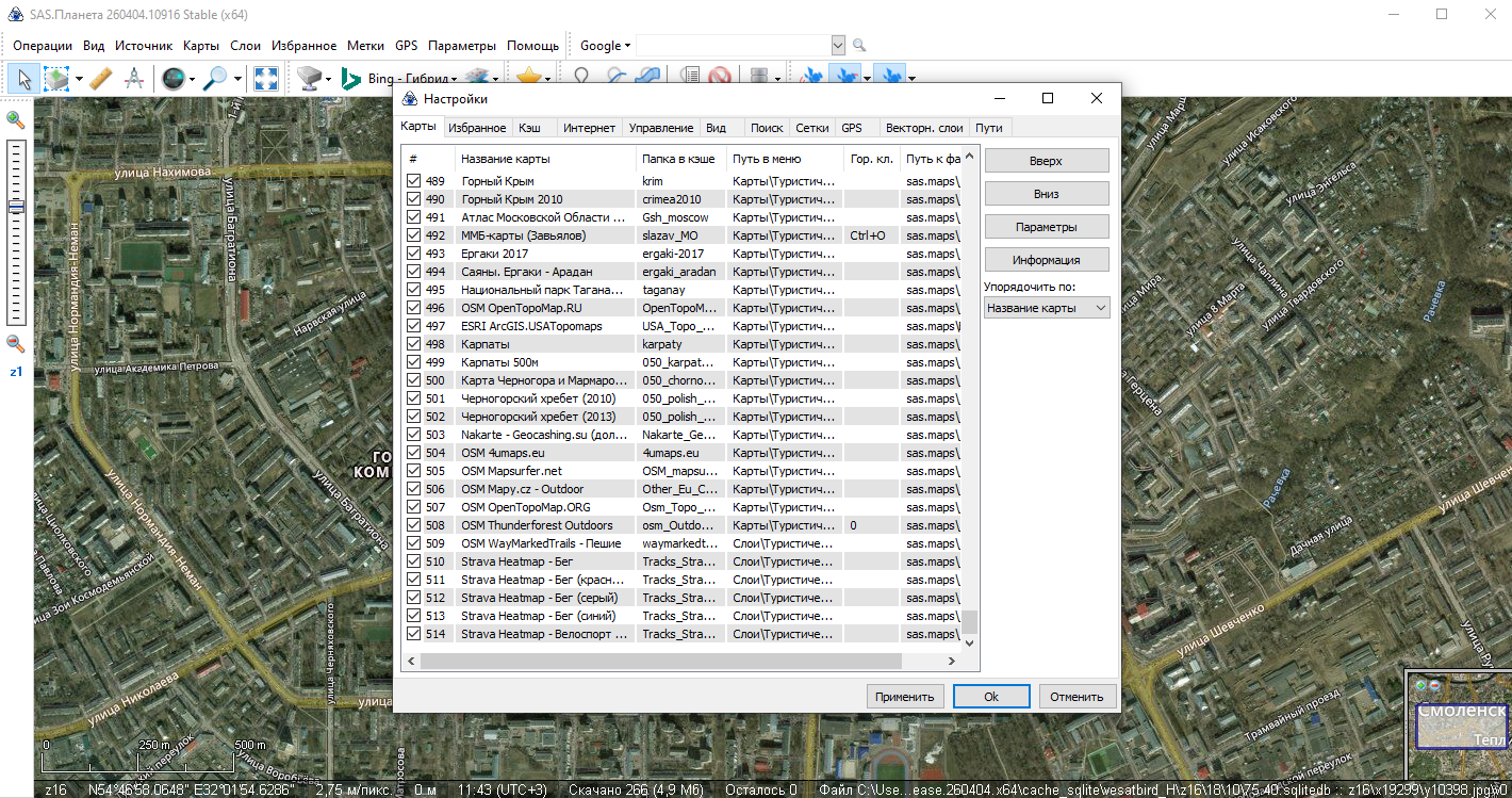 Откройте для себя SAS.Planet – универсальное и бесплатное решение для всех, кто ценит доступ к картам в любое время! Это портативное программное обеспечение позволяет загружать и просматривать спутниковые снимки высокого разрешения и разнообразные карты от ведущих мировых сервисов: Google Earth, Яндекс.Карты, Bing Maps, OpenStreetMap и многих других. Главное преимущество – все скачанные карты хранятся непосредственно на вашем компьютере, позволяя работать с ними офлайн. SAS.Planet также предлагает широкий выбор политических, ландшафтных, совмещенных карт, а также карты Луны и Марса для ваших исследовательских задач.