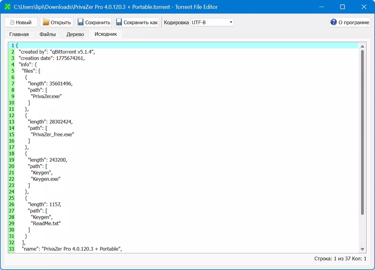 Torrent File Editor 1.0.2 Portable -Версия программы: 1.0.2