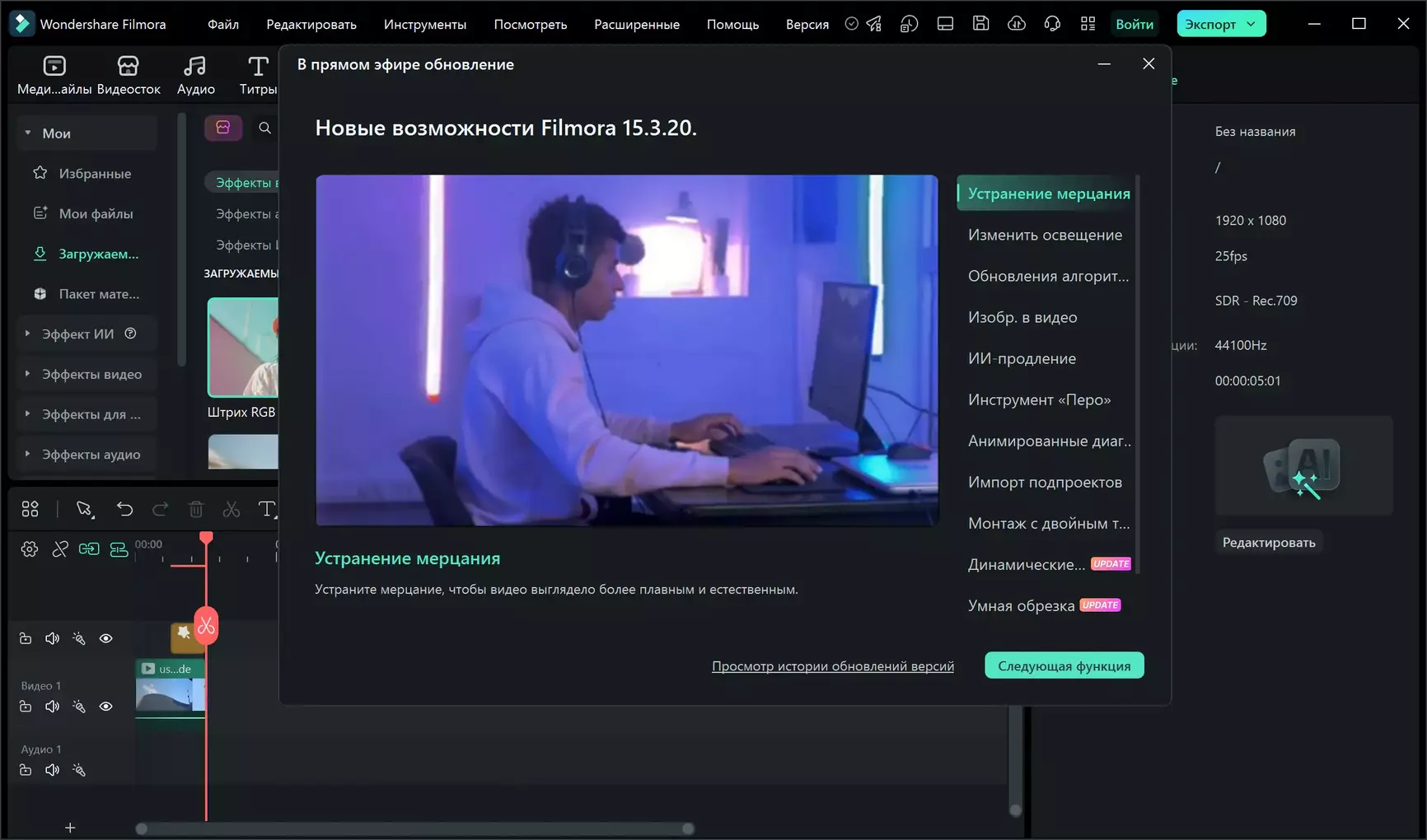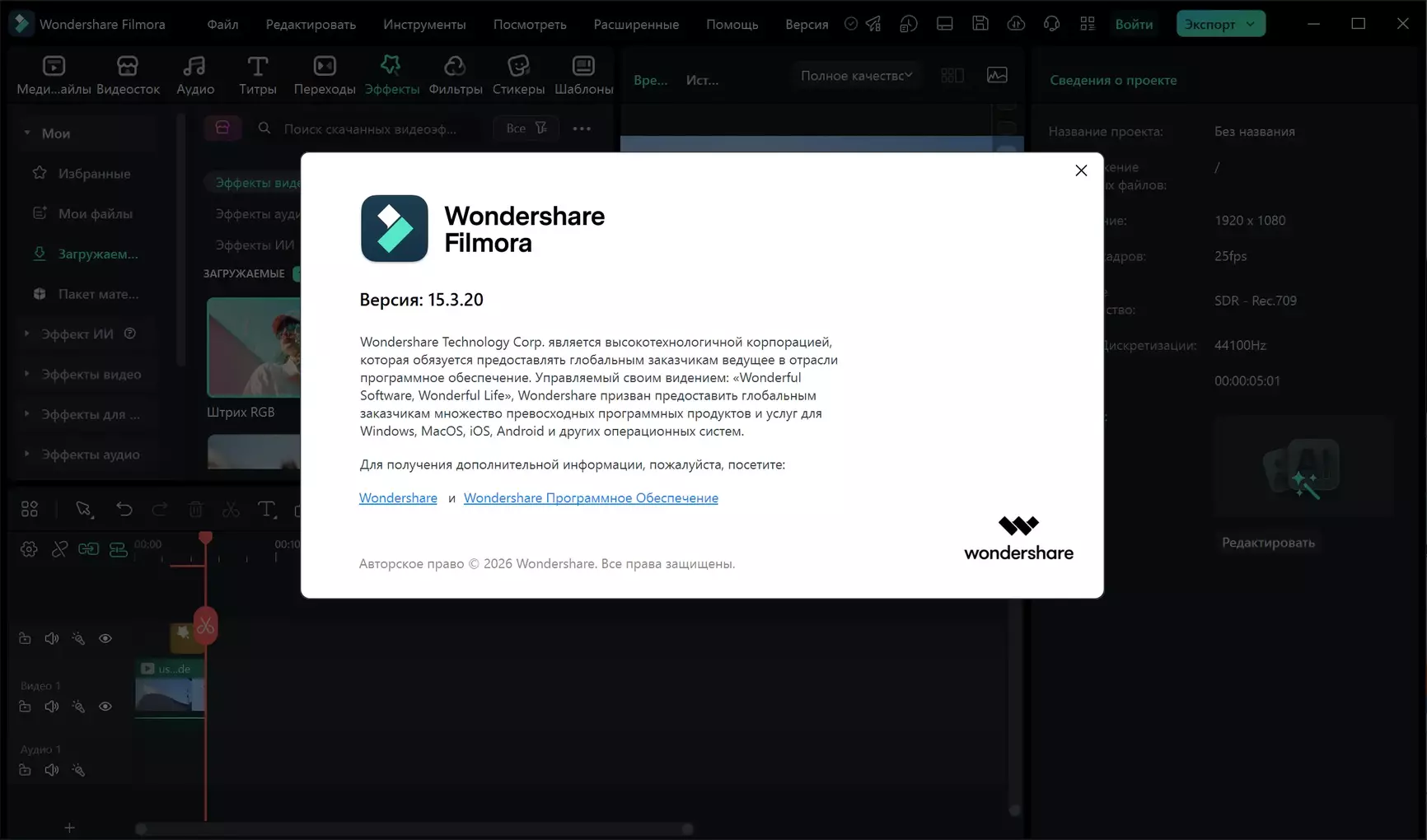 Wondershare Filmora 15.3.20.18660 -Версия программы: 15.3.20.18660