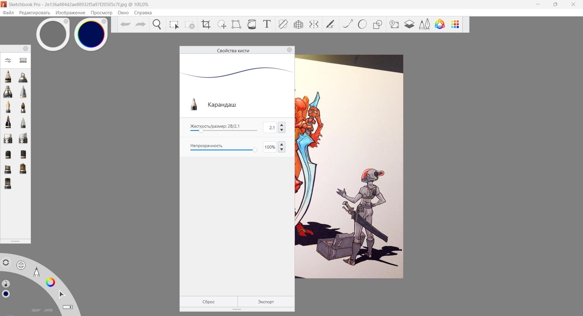 Кроме общепризнанных форматов файлов, таких как TIF, BMP, JPG и PNG, Sketchbook Pro поддерживает формат PSD, что позволяет обмениваться файлами (в том числе многослойными) с Adobe® Photoshop®.