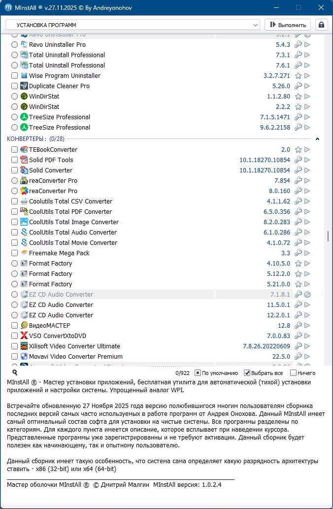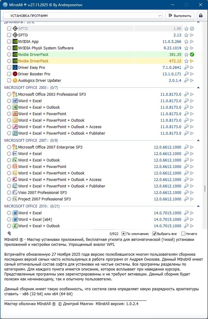 MInstAll v.27.11.2025 By Andreyonohov [rus] | раздача папками-Версия программы: v.27.11.2025