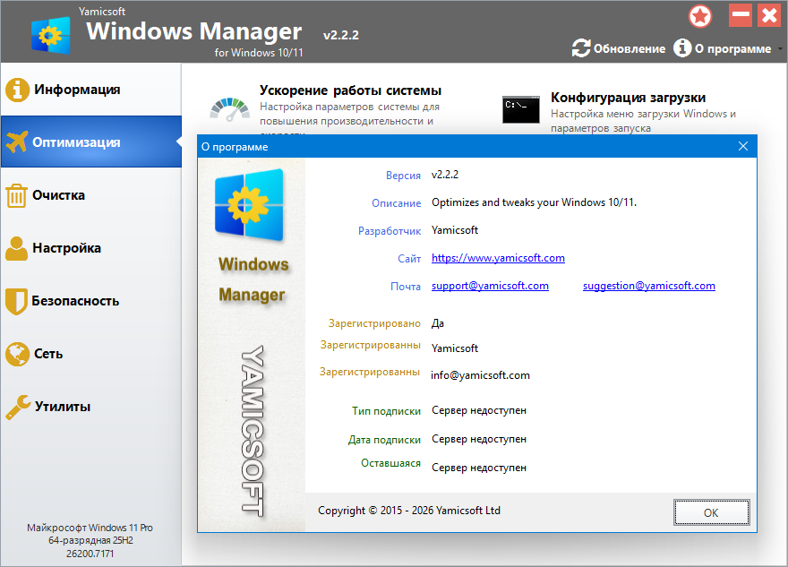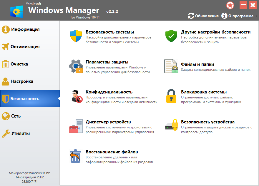 Windows Manager – это комплексный инструмент для всесторонней оптимизации, настройки, восстановления и очистки операционных систем Windows 10 и Windows 11. Этот универсальный набор включает в себя более сорока утилит, предназначенных для повышения производительности, устранения системных ошибок, укрепления стабильности и безопасности, а также для персонализации вашей системы Windows 10/11. Windows Manager поможет вам получить максимум от вашей операционной системы, превзойдя ваши ожидания.