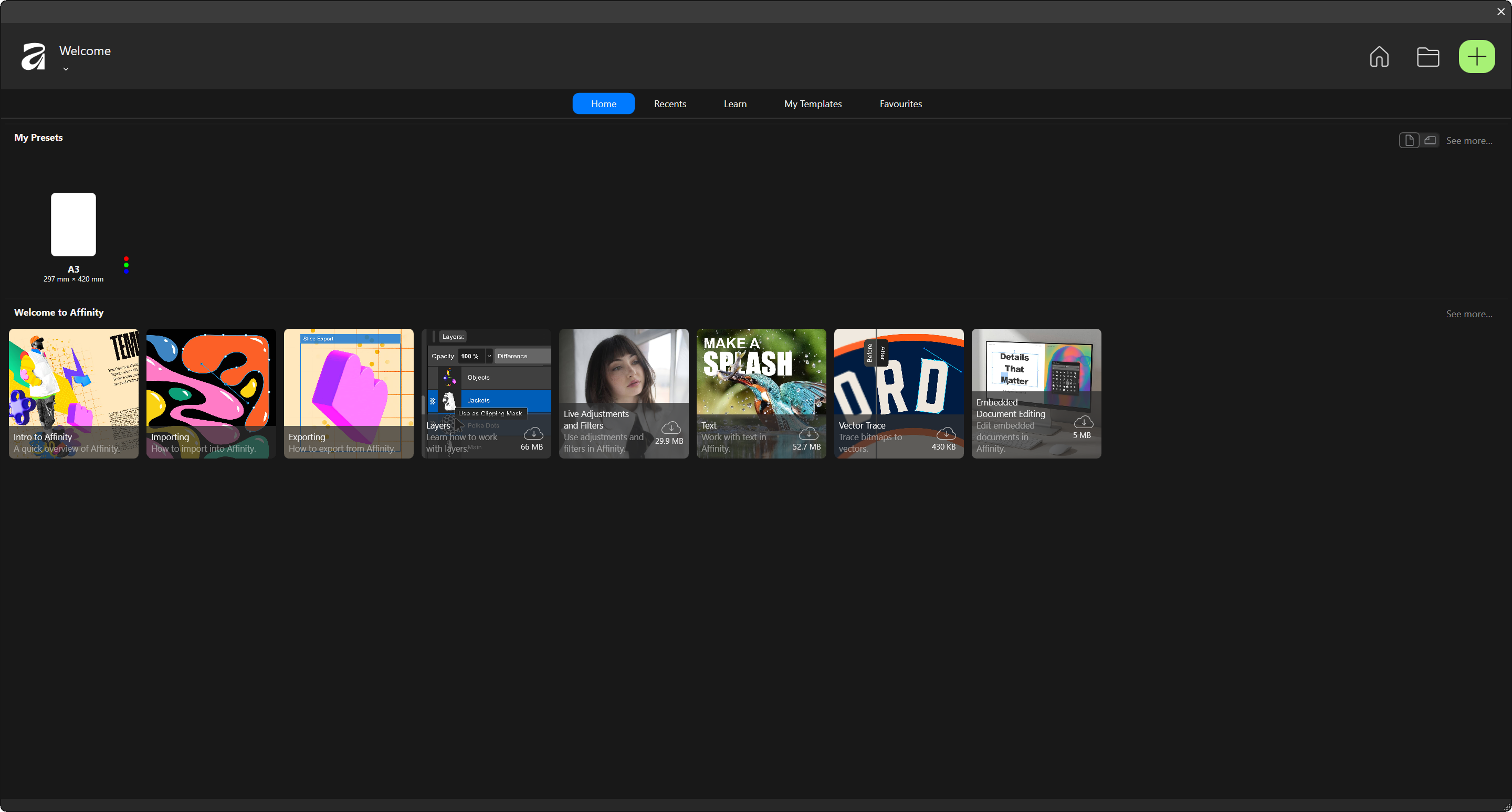 Программы Affinity имеют достаточно активное сообщество, потому вы легко найдёте видео и текстовые инструкции по использованию, которые помогут разобраться, что к чему. Более того, базовые уроки доступны прямо внизу окна открытия имеющегося или создания нового документа.